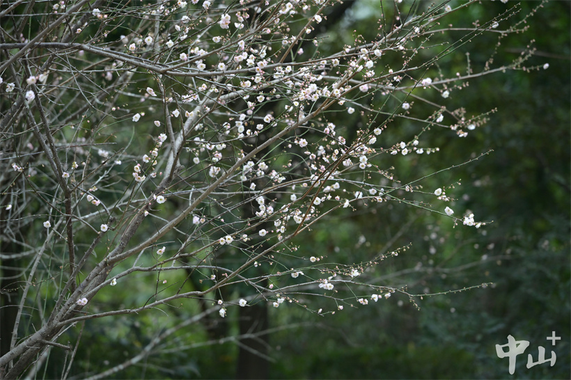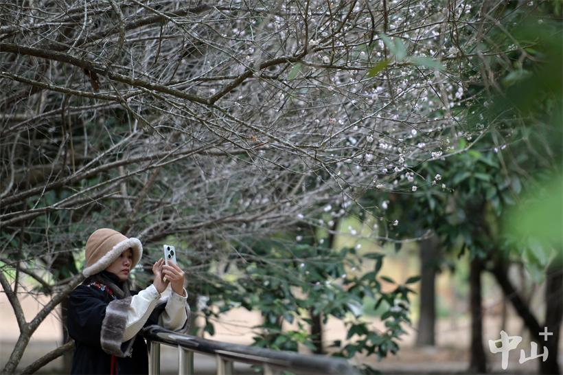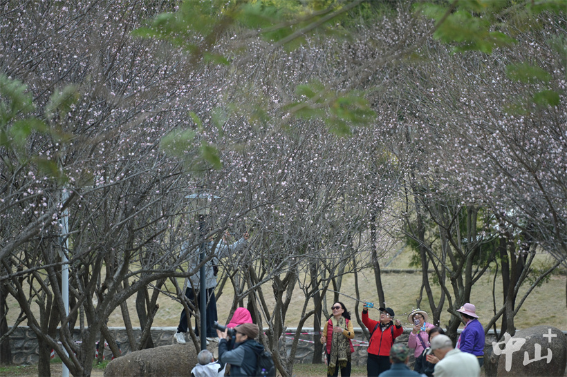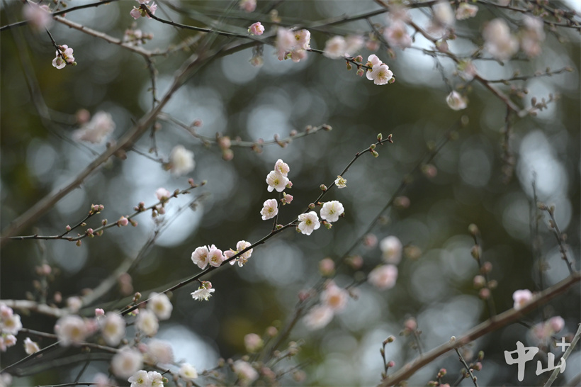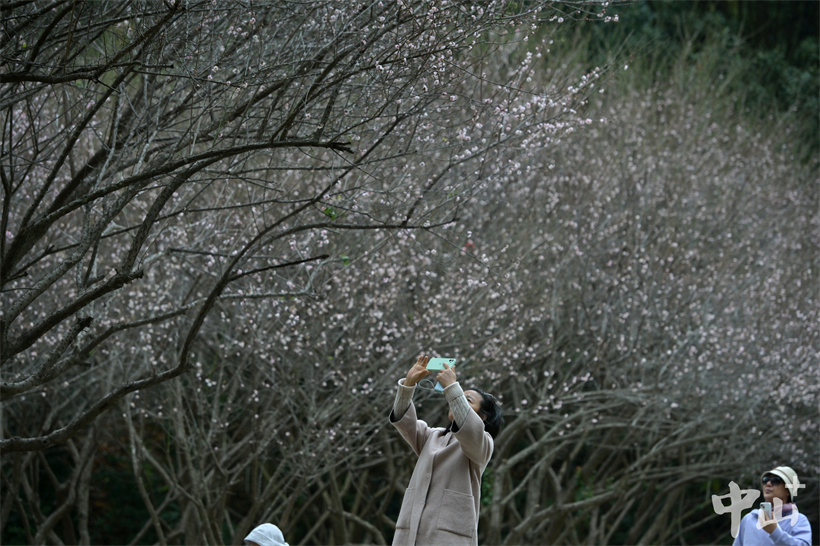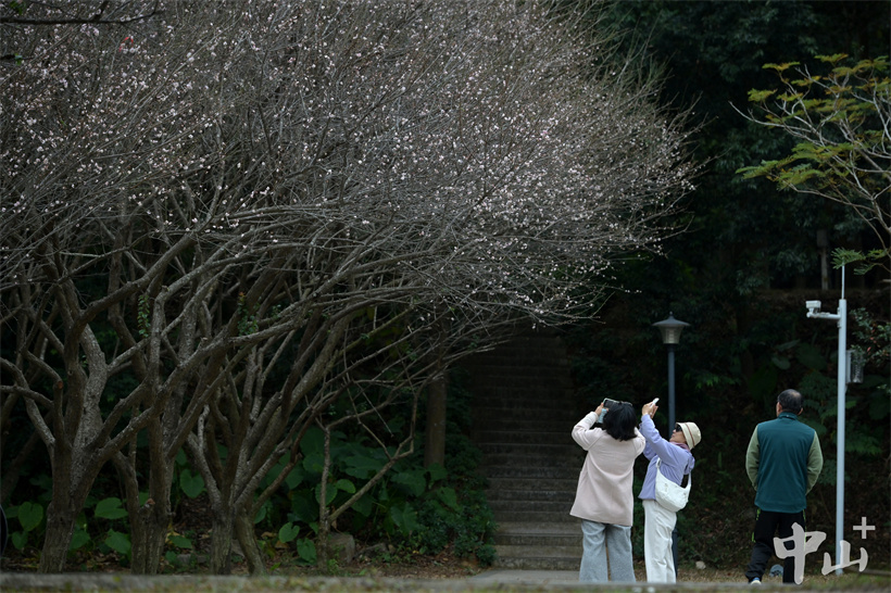 1月22日,中山树木园里的梅花盛开。朵朵粉色的梅花在枝头绽放,散发出阵阵梅香,吸引了不少市民前往赏花“打卡”。