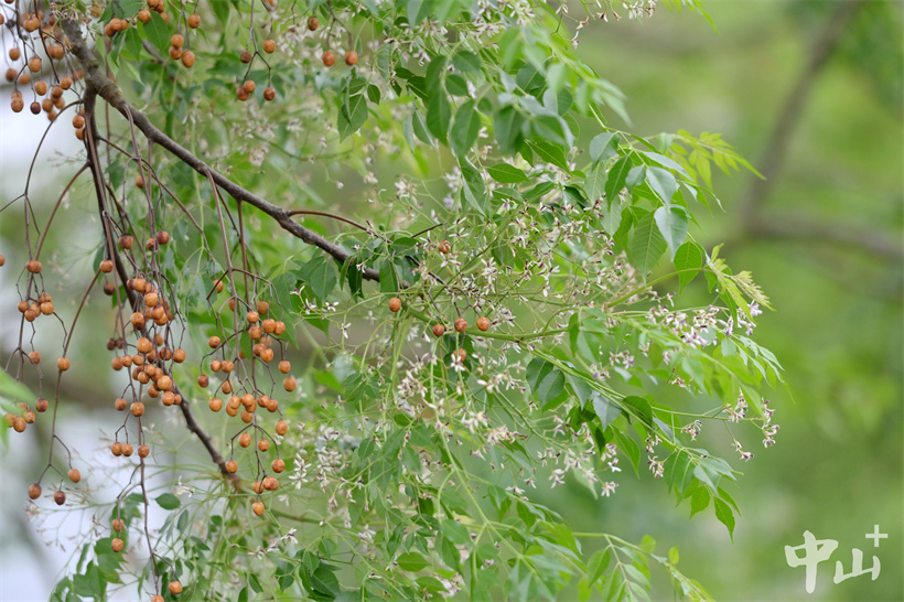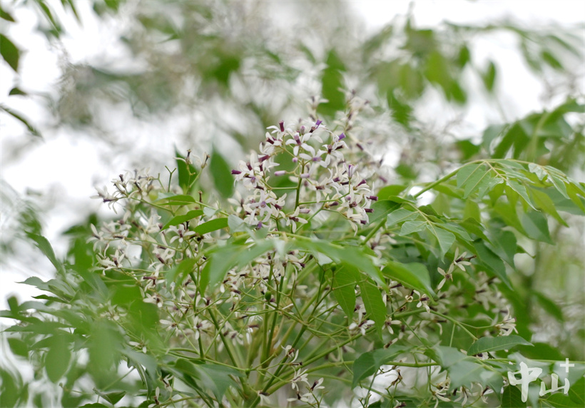 暮春时节,正是苦楝树的盛花期。4月2日,在南朗街道徐刘村的鱼塘边,几株苦楝树亭亭如盖,淡白微紫的花朵密密匝匝缀满枝头,整棵树宛若被春日的轻纱包裹,在青绿的田野映衬下,如同一幅朦胧而诗意的风景画。古人将春季的花信分为二十四番,楝花是最后一番,楝花盛开既是春日的收尾,也是夏日将至的序章。