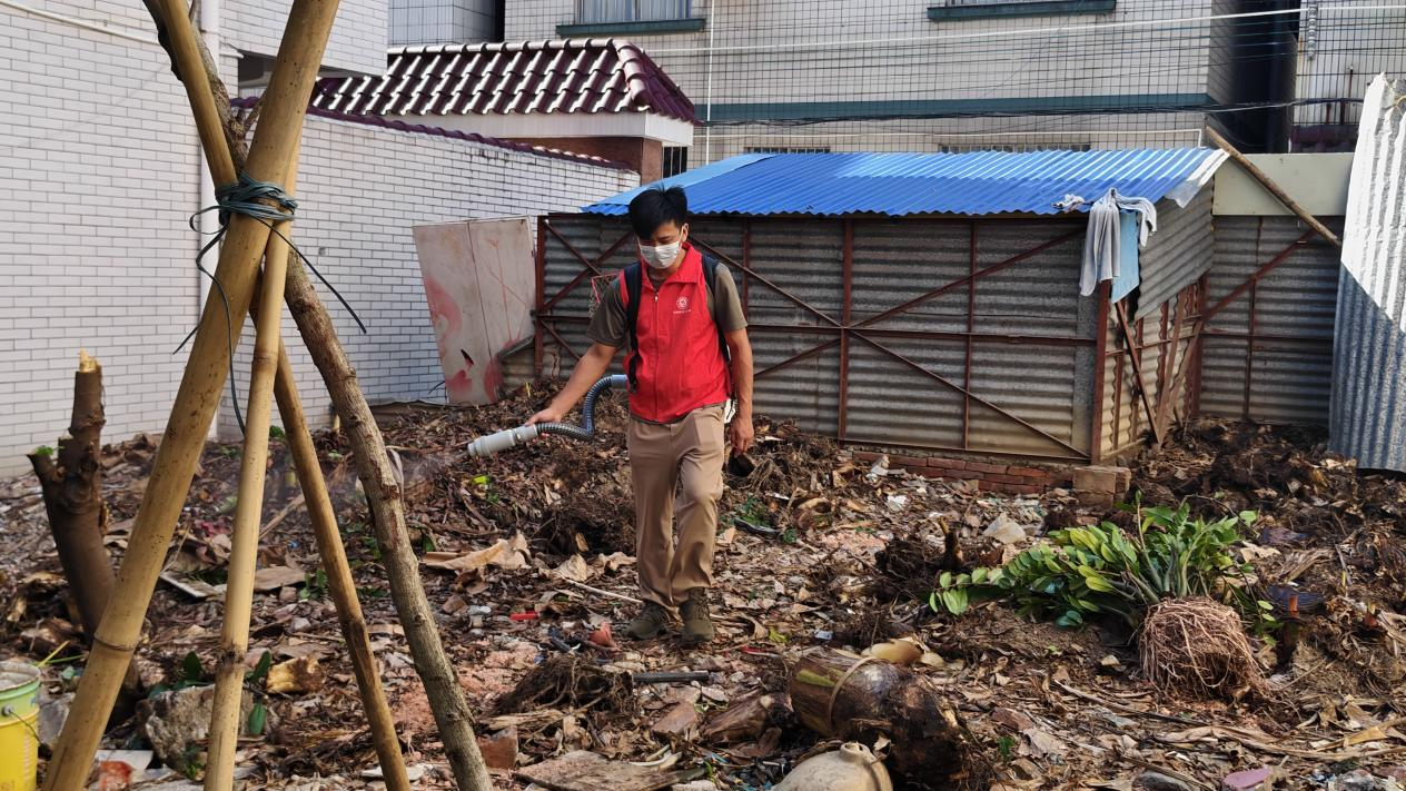 “消杀要彻底,不能留死角,这样才能切断蚊虫传播链。”10月14日天刚亮,石岐街道康华社区网格员、入党发展对象苏洁洪已背着20多斤重的喷雾器,穿梭在楼栋间。喷雾器的背带勒得他肩膀生疼,汗水浸透衣衫,消毒水味成为他最熟悉的味道。