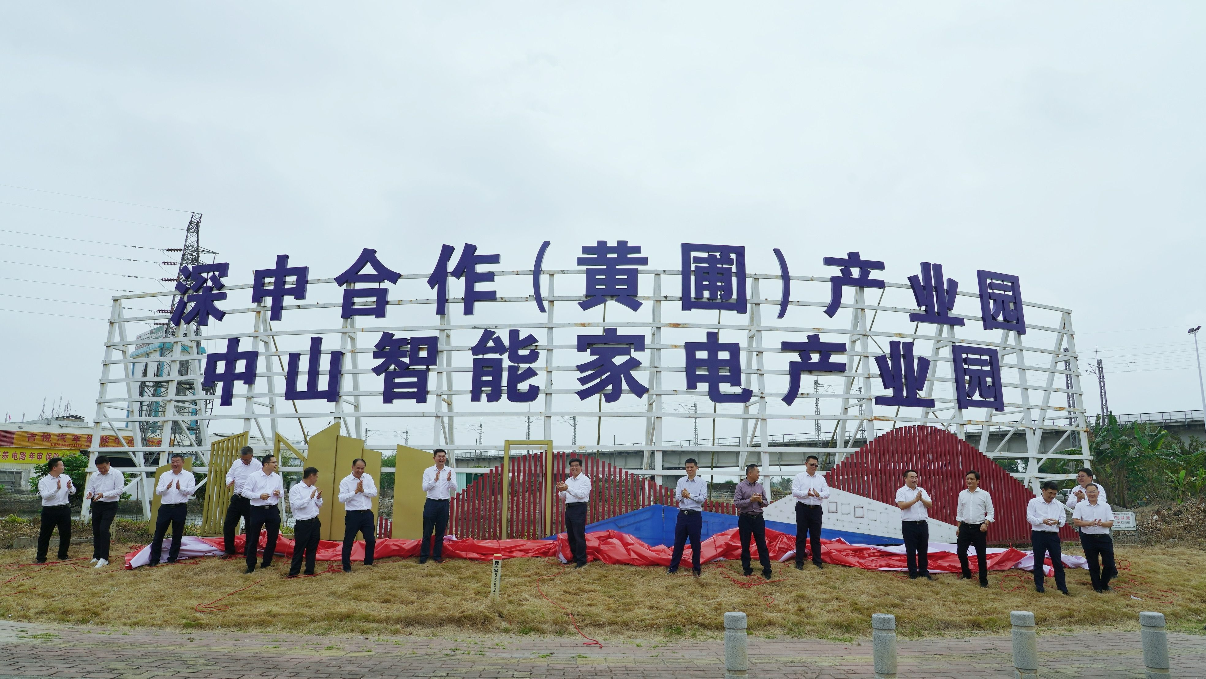 黄圃镇领导与商会及企业代表共同为深中合作(黄圃)产业园揭牌。黄圃宣供图
