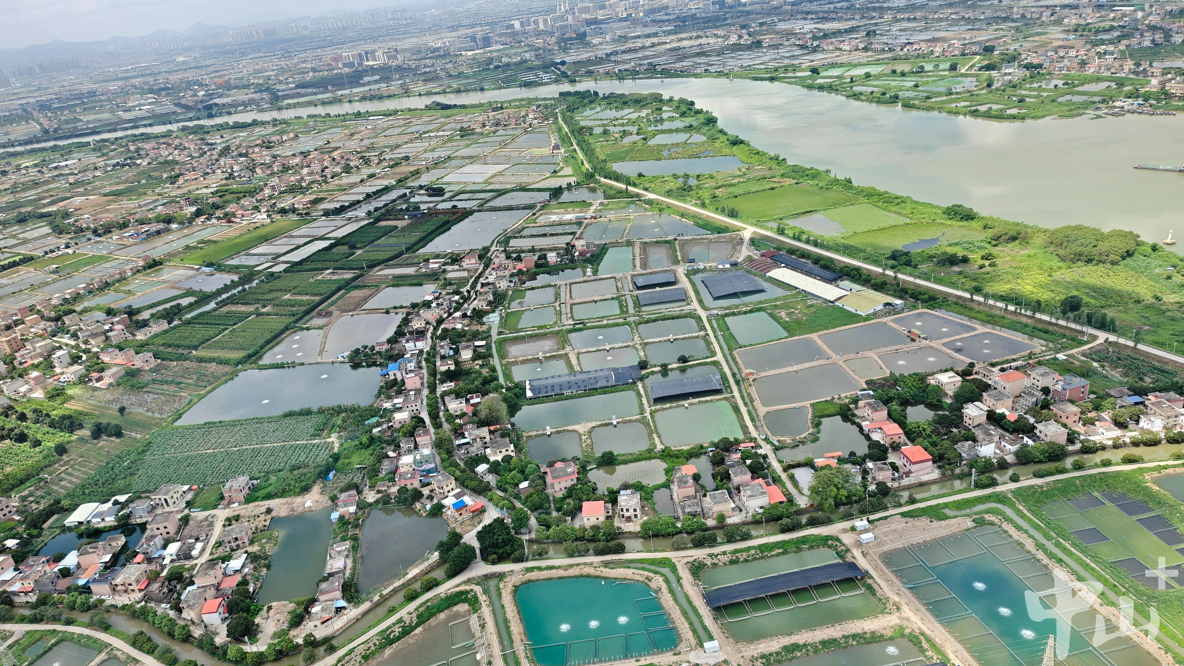 记者在阜沙低空经济产业基地,搭乘旋翼机升空后拍下的阜沙美景。记者 卢兴江 摄