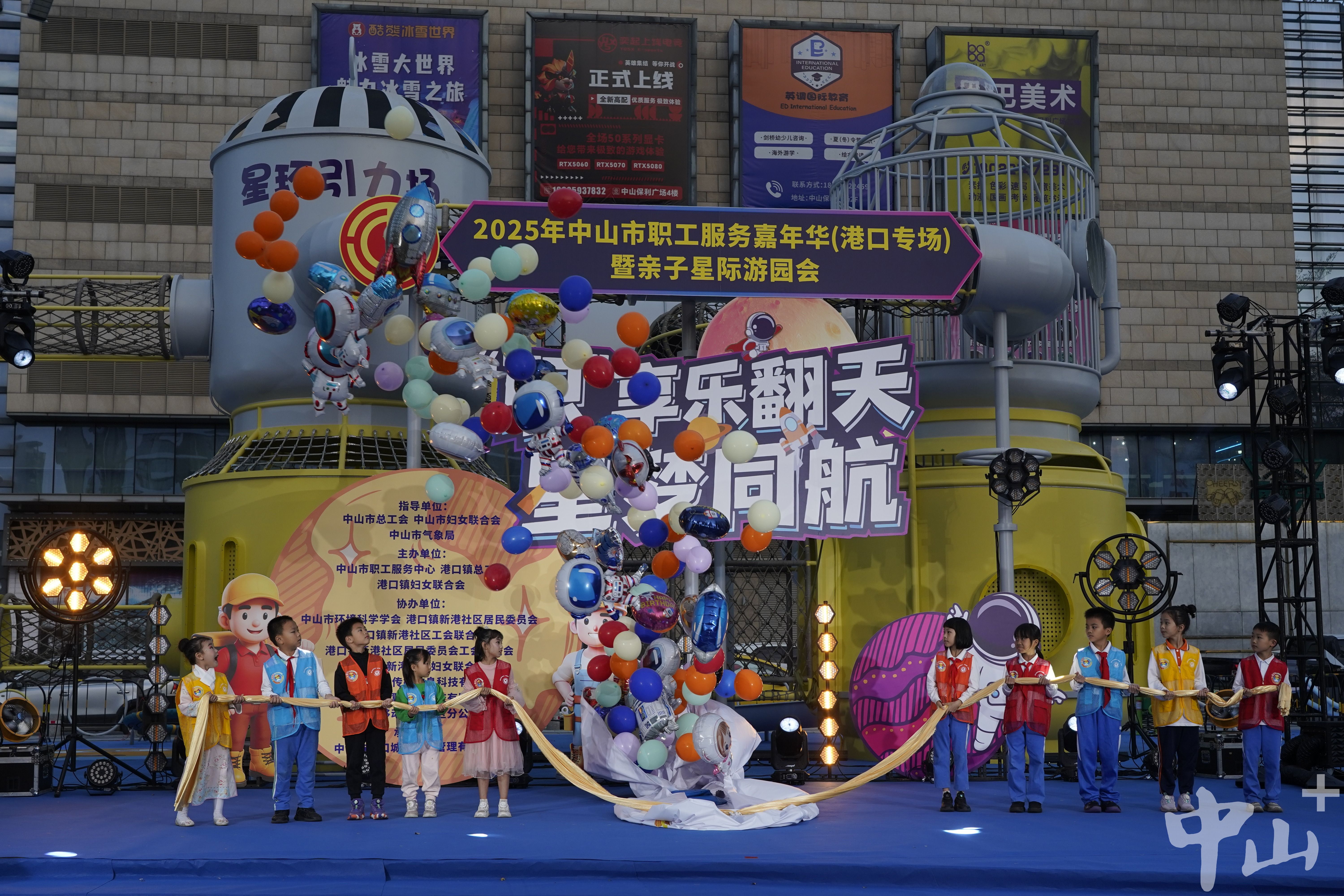 机器狗化身“醒狮”巡游,机器人在舞台上表演舞蹈,无人机足球在空中射门……12月12日下午,中山市港口镇童立方儿童友好街区化身为璀璨的星际乐园,2025年中山市职工服务嘉年华(港口专场)暨亲子星际游园会在此拉开帷幕。活动以“服务职工、凝聚家庭、启迪童梦”为核心,以儿童友好为准则,通过天文科普、文艺汇演、亲子市集等多元形式,为职工家庭打造了一场兼具趣味性与教育意义的星际主题盛会,吸引逾千名职工及家属参与。