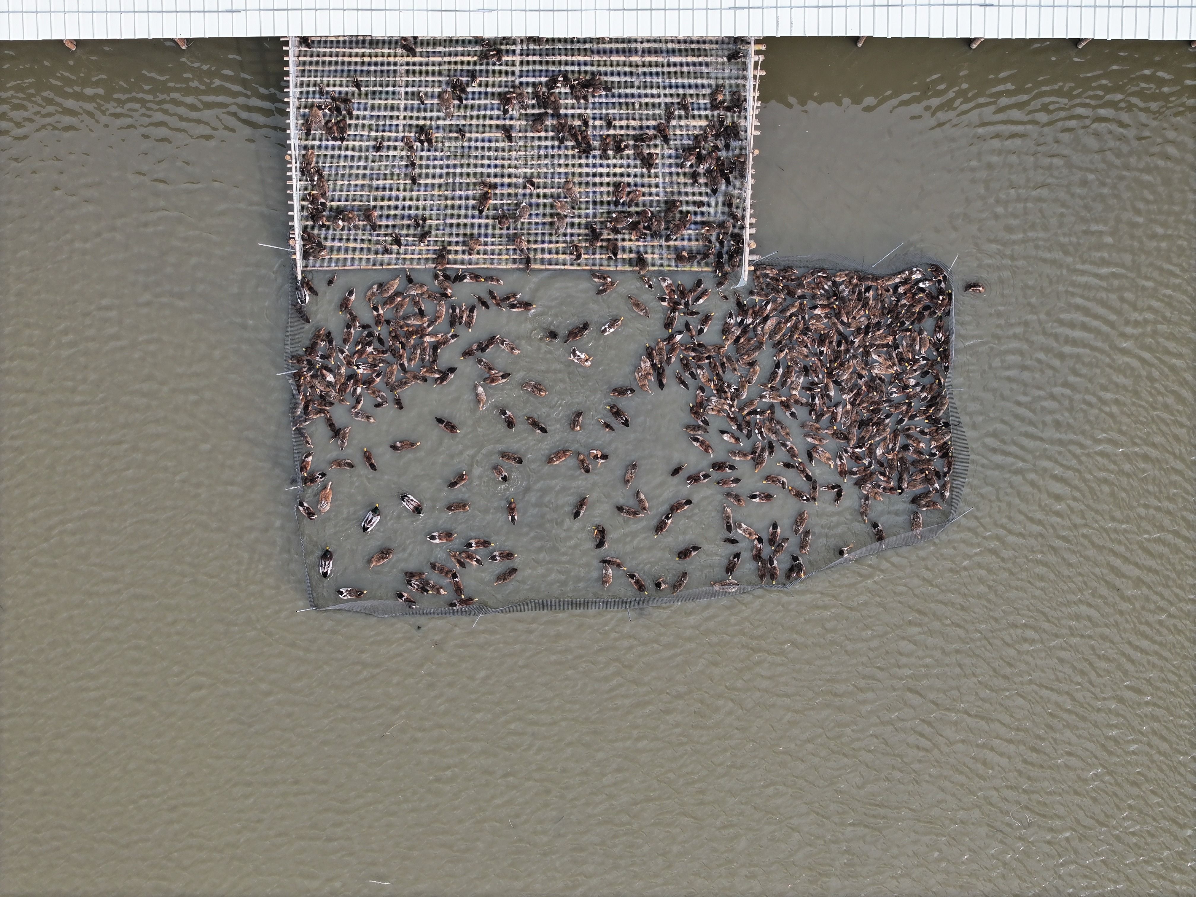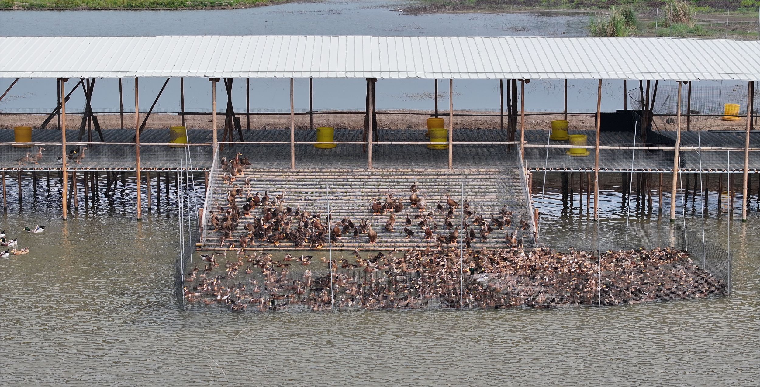 基地密密麻麻的中山麻鸭正在嬉水。记者 易承乐 摄
