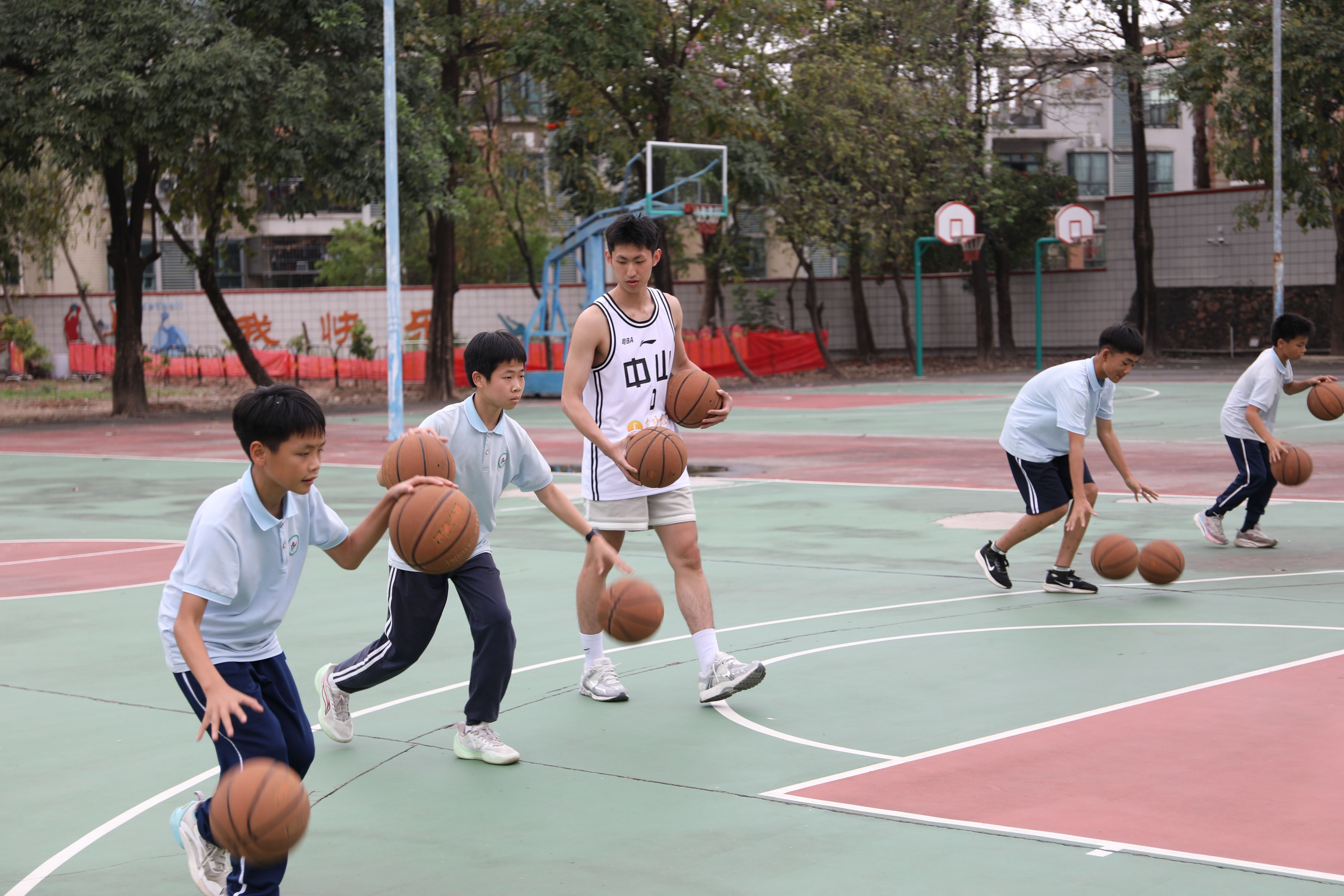 关家杰回母校指导校篮球队小队员。记者 王云 摄