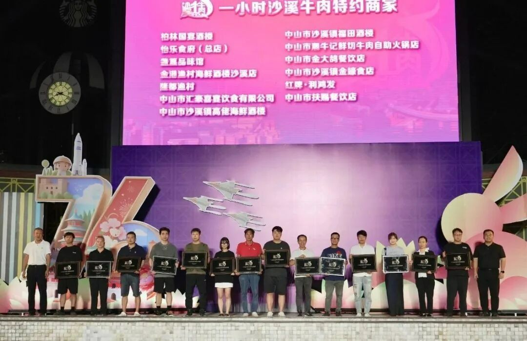 10月2日晚,“沙溪镇星宝夜经济集聚区”亮灯仪式上,全新美食IP“一小时沙溪牛肉”正式发布。受访者供图