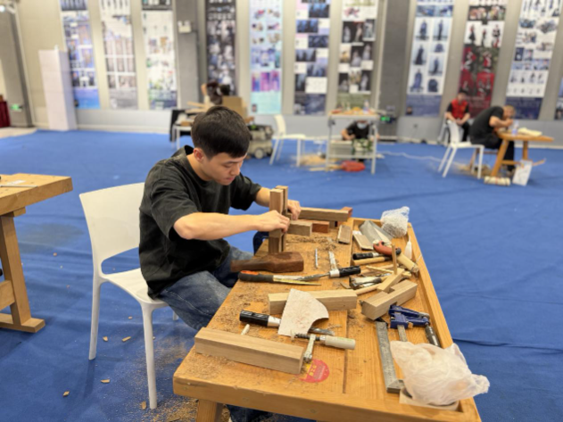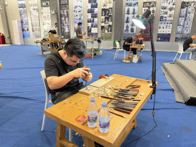 实操现场,参评者们也分享了创作心得。来自坦洲的猛犸牙雕参评者蔡师傅说:“做牙雕20年,这次为了这次评选 ,练了一个多月的细节处理,能和同行交流、得到评委指导,不管结果如何,都是一次难得的学习机会。” 沙溪镇家具工艺参评者邢师傅则坦言:“榫卯结构本身就是‘材料与技艺的和谐’,我提前练了半个月多木料榫卯,就想把最扎实的手艺亮出来,为中山传统家具工艺争口气。”