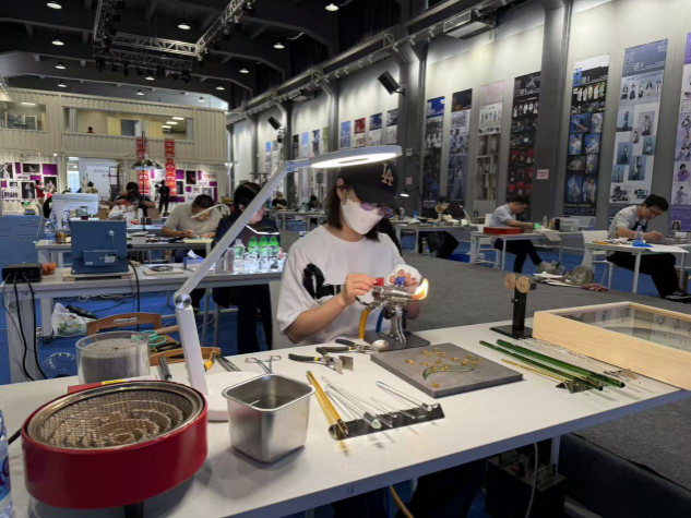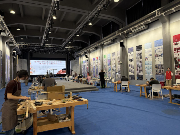 现场按功能划分成两个区,“实物作品展示区”陈列参评者此前申报的实物作品,供评委直观考察艺术积累。 在“技艺实操展示区”,从家具工艺选手专注搭建 “五条木料以上的榫卯结构”,到陶艺选手依次完成揉泥、塑形、干燥、修整,再到猛犸牙雕、木雕选手精细推进粗坯、细坯、修光、细修流程,各品类创作场景生动展现了中山工艺美术的多元魅力。