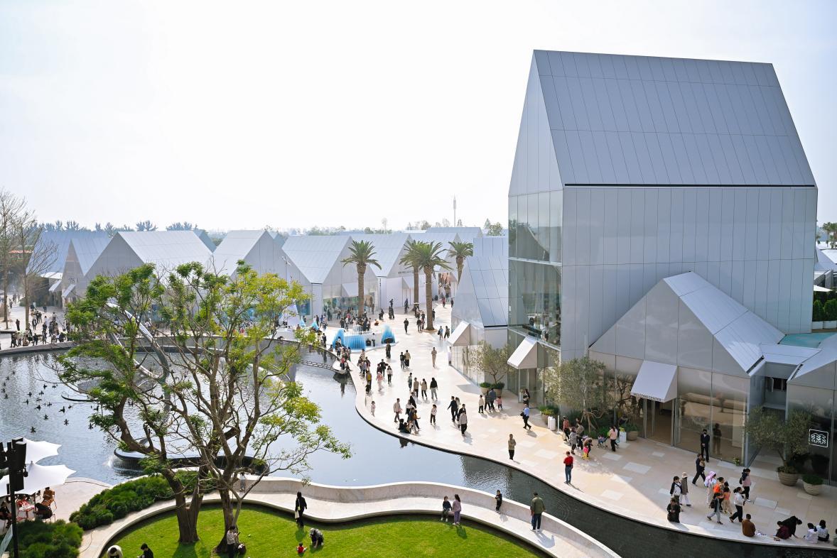 区别于传统商业项目,MIXC VILLAGE最大特色在于其与生俱来的生态基因。项目被约40公里海滨栈道与近70万平方米主题公园的生态绿意环抱,实现了商业空间与自然资源的有机共生。该项目由意大利建筑师Gianni Ranaulo执笔,以纯白、轻盈的现代建筑群,替代传统欧式风格,以简洁现代的设计语言营造 “返璞归真”的度假基底,通过对中心湖、中心草坪、水街、岩街等场景的精心营造,项目成功将购物体验嵌入一幅滨海生态画卷之中,为市民提供了高品质的公共休闲空间。