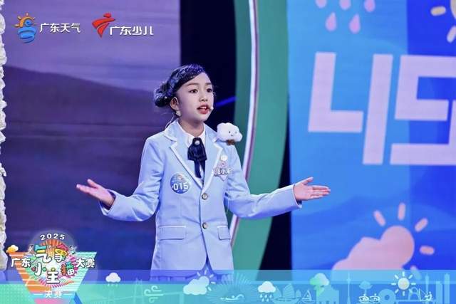 2月2日,2025 年广东 “气象小主播” 大赛决赛在广东广播电视台演播厅圆满举行。来自中山市小榄镇同乐小学的11岁小选手范小禾凭借出色表现,斩获省一等奖。