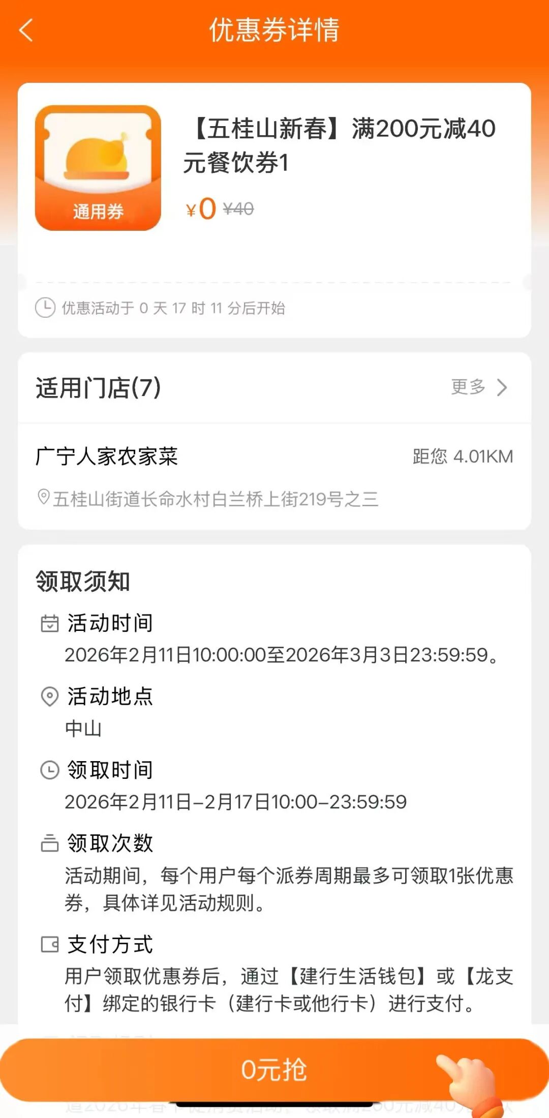 使用范围:仅限五桂山街道内符合条件的合作商户使用,消费前可提前咨询商户是否参与活动;