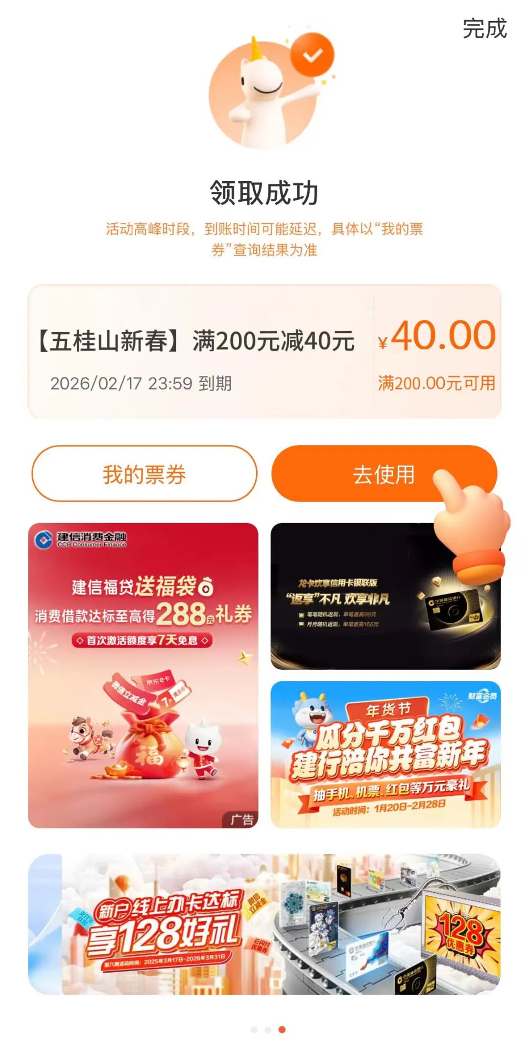 使用方式:消费结账时,打开建行生活APP,出示已领取的消费券,按照商户指引进行核销,即可抵扣对应金额;
