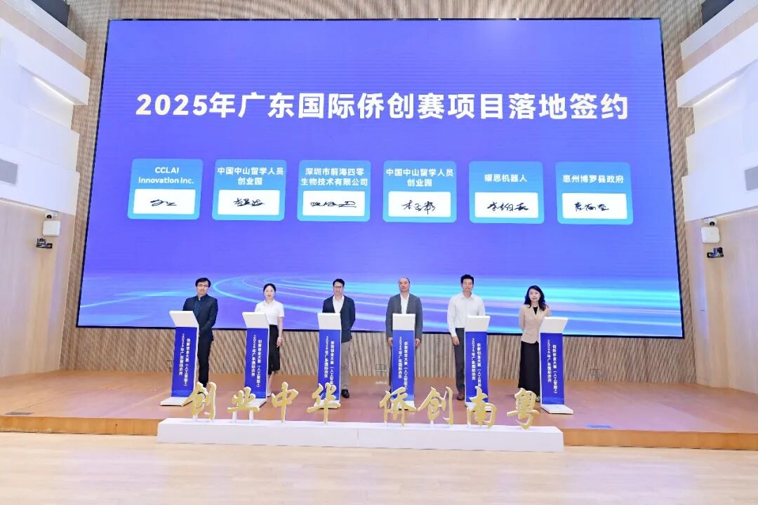 启动仪式上,人形机器人的赛事介绍先声夺人。随后,中山市侨联分别与翠亨集团、中山健康基地、中国(中山)留创园、南朗青创园、嘉华互联网中心等现场签订赛事协作机制,将在赛事组织、项目孵化、产业对接、落地服务等方面开展深度合作,构建侨创项目全周期服务体系。压轴签约的,则是三个分别来自加拿大、澳门和深圳的2025年参赛项目,通过参赛,最终实现项目落地,印证了广东省国际侨创赛“以赛促投”“以赛引才”的独特魅力,更吸引了106个项目现场报名参赛。