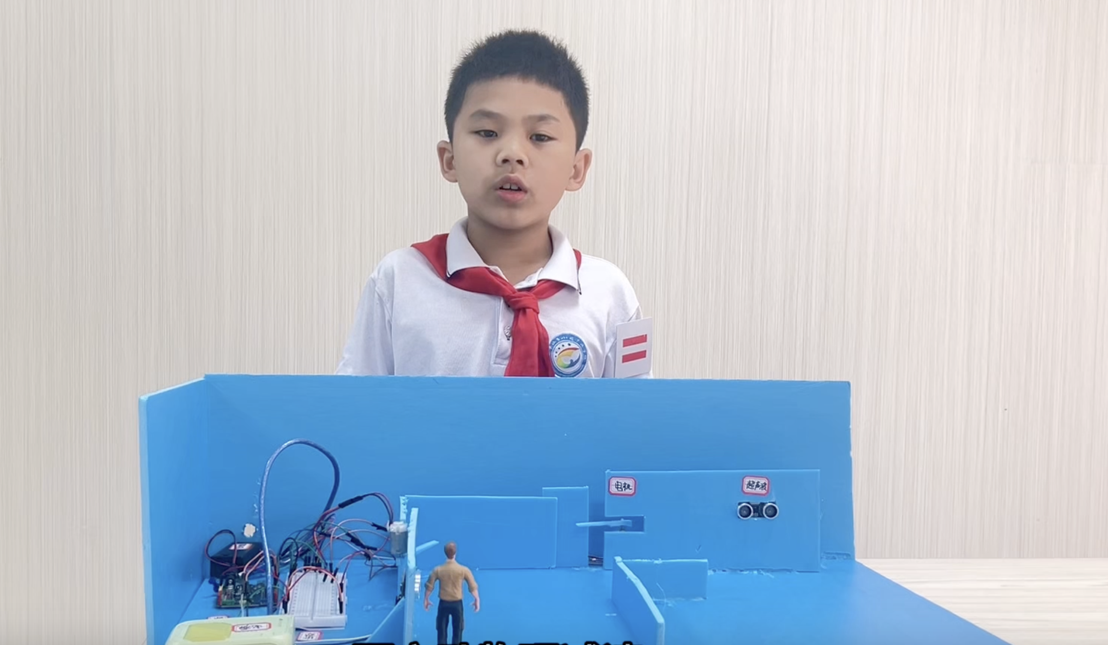 研发过程并不顺利。一开始,单一传感器总被书包、扫帚等物品误触发,我反复调试程序,还查阅了很多资料,最终想到增加红外传感器双重校验,才算解决了问题。为了让装置更美观,我还学习了3D建模和激光切割,给外壳做了贴合墙面的设计。记得第一次成功调试时,挡板精准弹出又平稳收回,我激动得跳了起来,连老师都夸我是“小小工程师”。