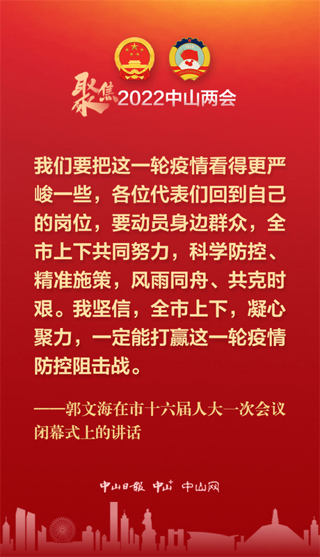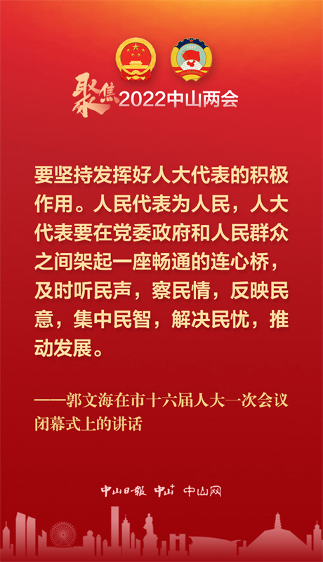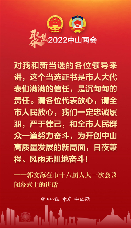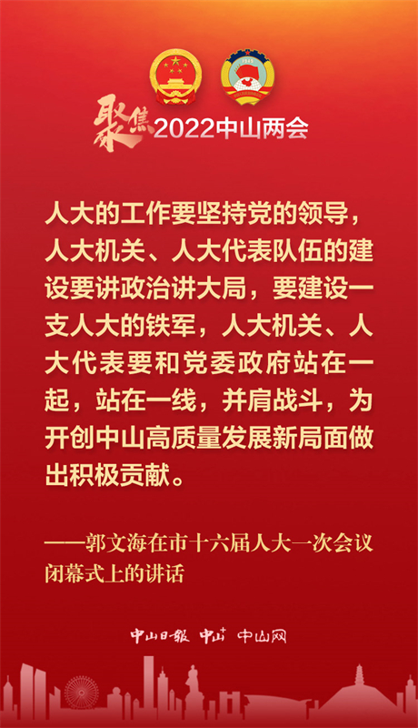 1月14日下午,中山市第十六届人民代表大会第一次会议举行第二次全体会议,在圆满完成各项议程后胜利闭幕。在闭幕大会上,市委书记郭文海的这些话语鼓舞人心、提振干劲。