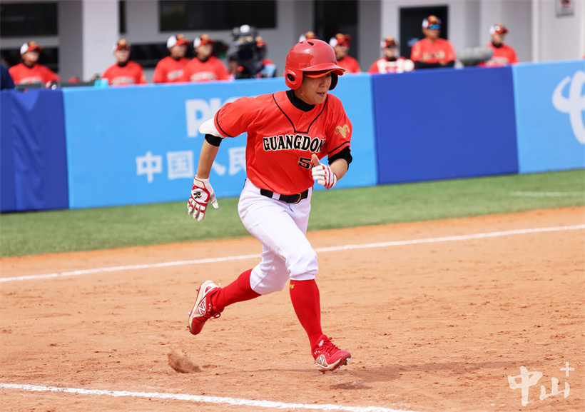 ▲广东队队员跑垒。