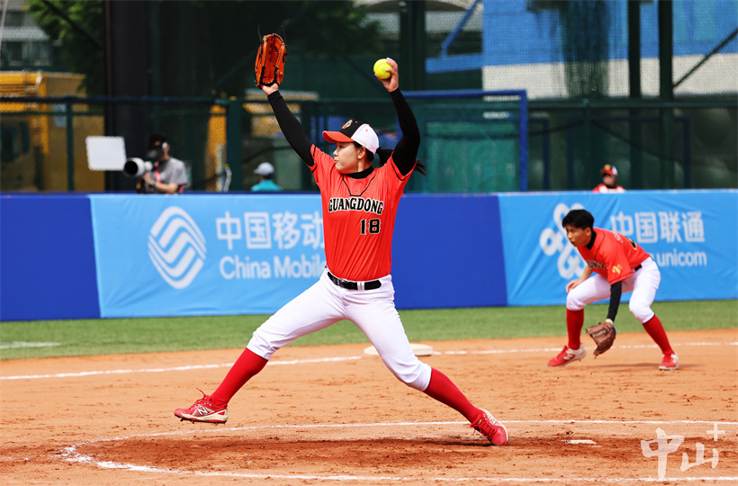 ▲比赛现场,广东队投手投球。