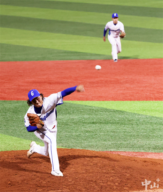▲决赛现场,广东队投手投球。