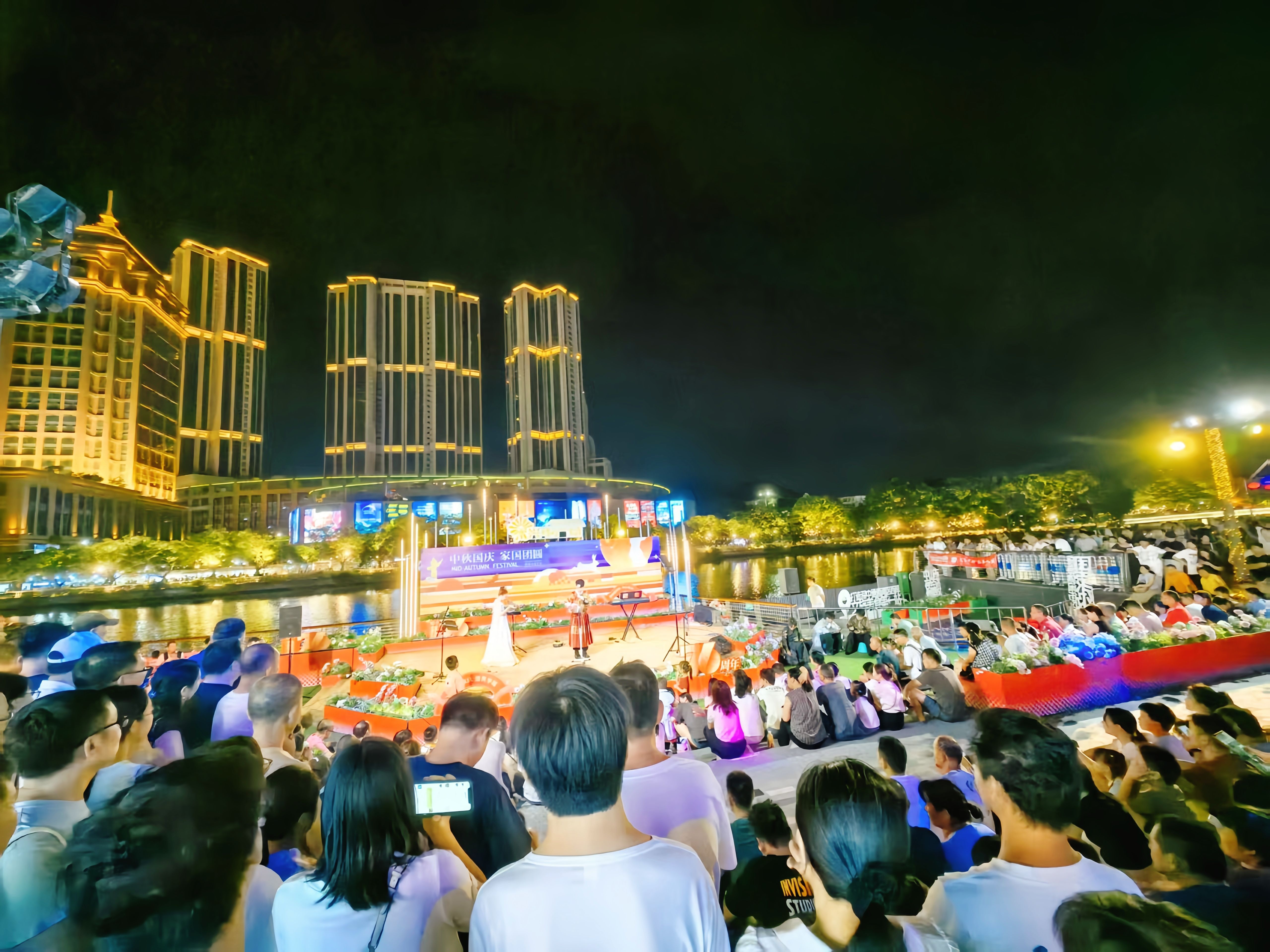 岐江水面上,深中同城龙舟邀请赛劈波斩浪,展现湾区协同魅力。中央广场上,中葡文化周带来九个葡语国家的艺术展演,热情奔放的土风舞与深情葡语民谣在岐江畔回荡,为游客打开了一扇感知异域文化的窗口。粤港澳流行音乐周连番唱响,演绎港乐经典。亲水舞台上,“华月共赏·乐享佳节”中秋主题音乐会以月光为幕、歌声为伴,与游客在岐江边共赏一轮皎洁明月。每晚的舞台灯光,都将兴中广场点缀成一片浪漫星海。