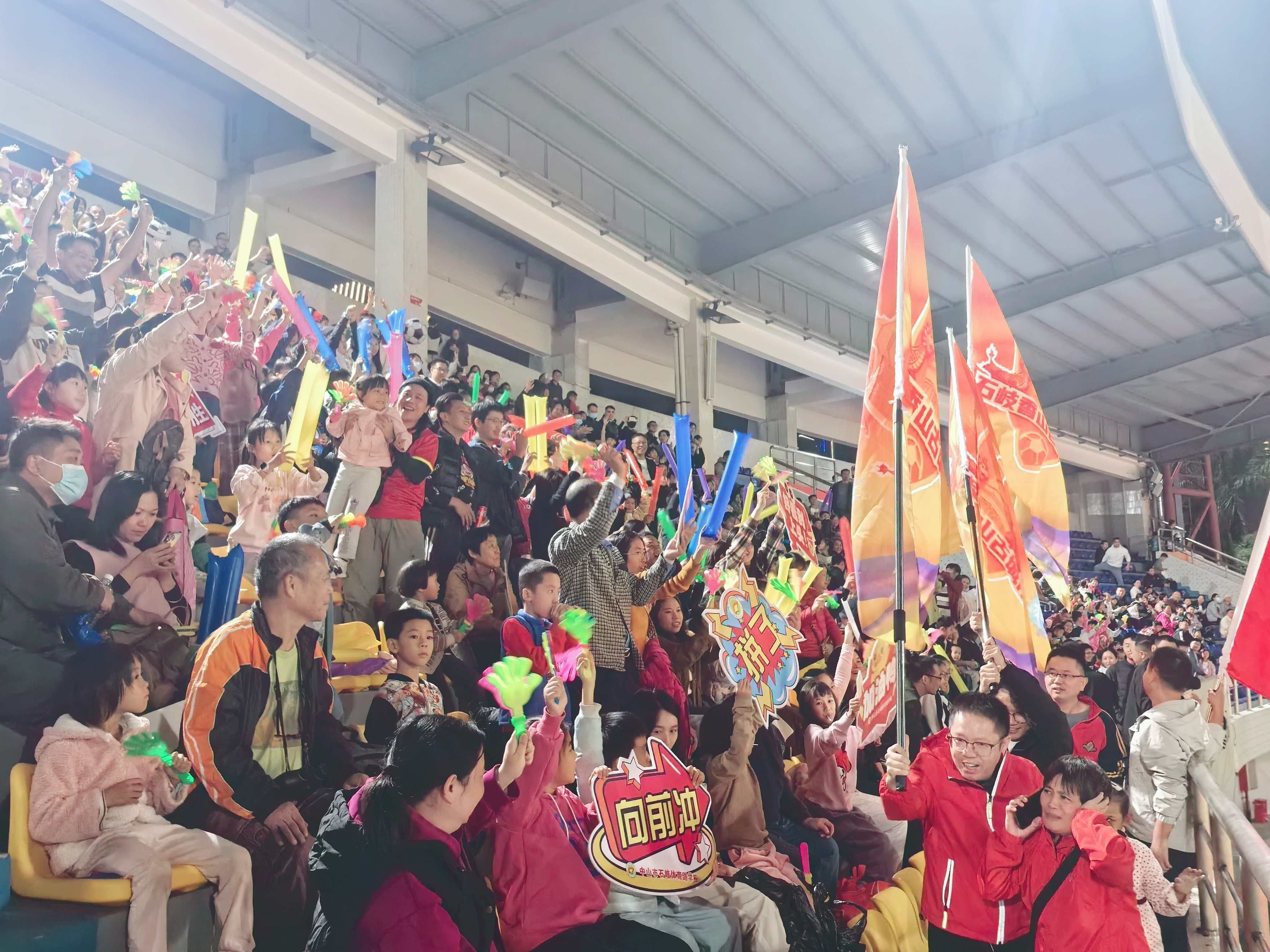 值得一提的是,在石岐香山古城队与南头智造队的焦点对决上演的同时,由中山市商业协会自发组织的百人观赛团到场支持中山镇超,他们手持助威道具,以震天的呐喊声为本土球队注入强劲动力,成为赛场边一道亮眼的“商企同心”风景线。