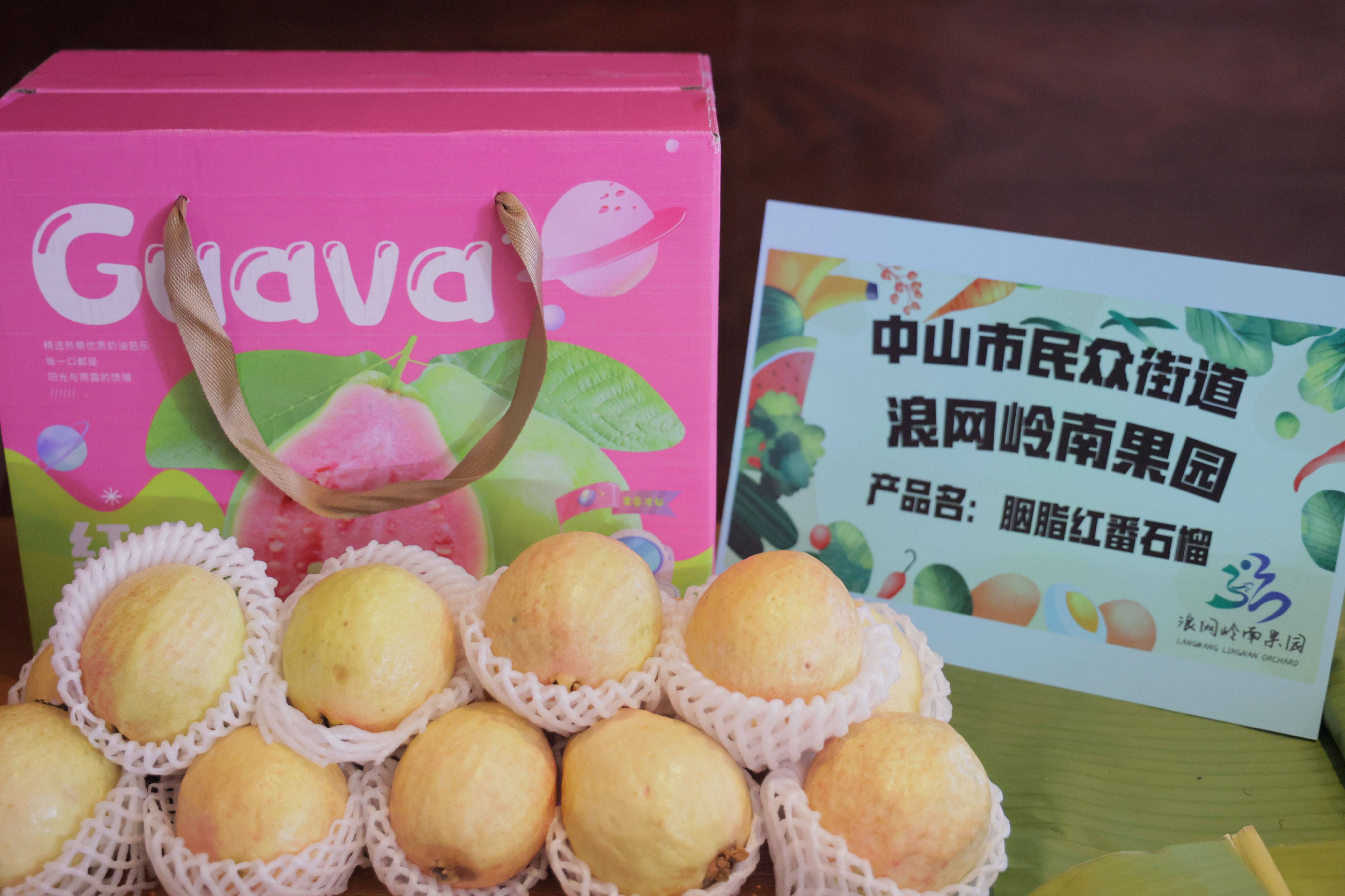 民众街道岭南果园出产的红心芭乐、香蕉等水果佳品。通讯员 吴正伟 摄