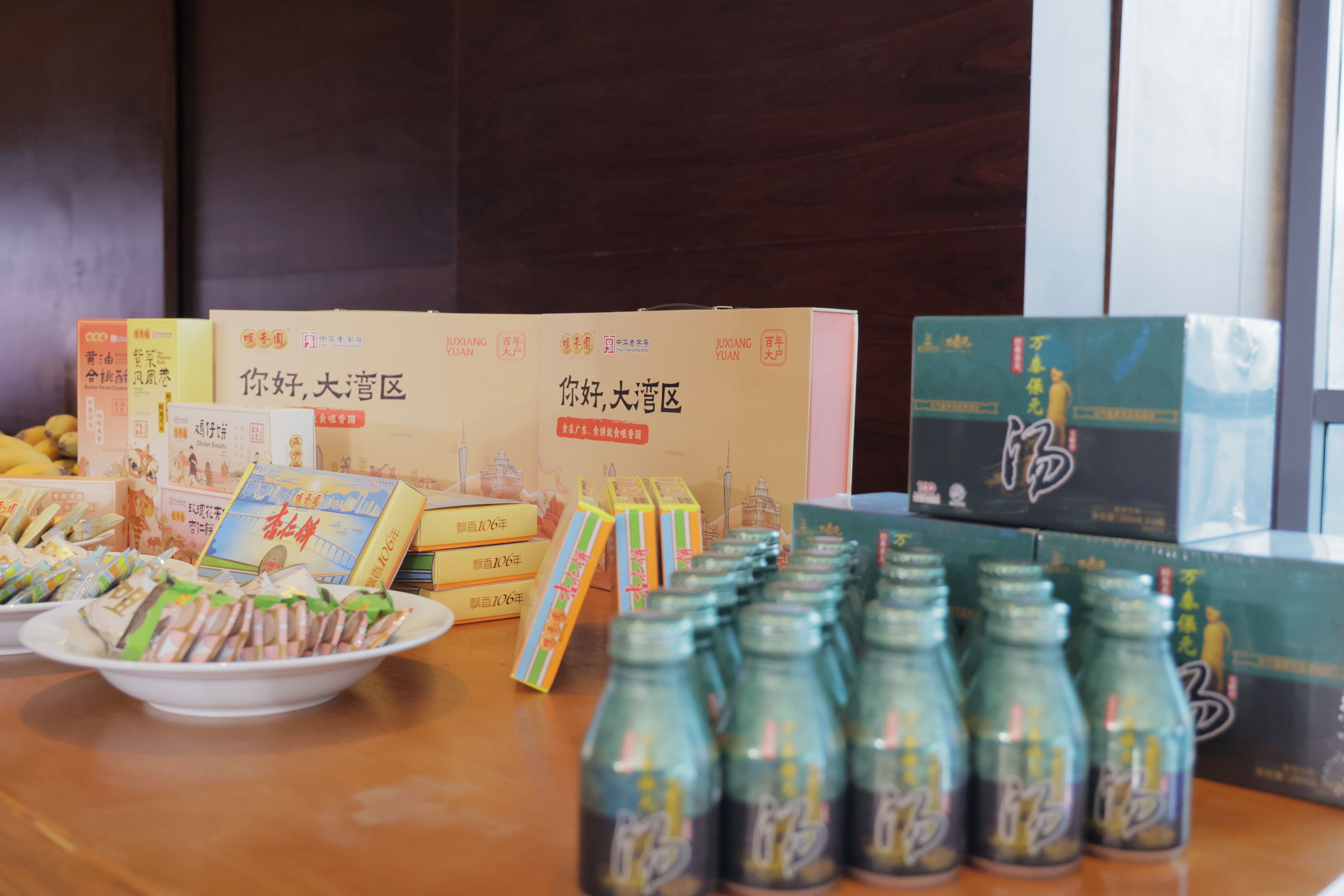 活动现场,火炬高新区企业广东万泰元科创药业有限公司生产的万泰保元汤,中山市咀香园食品有限公司生产的杏仁饼、核桃酥等经典名吃,以及民众街道岭南果园出产的红心芭乐、香蕉等水果佳品吸引了与会嘉宾驻足品尝。