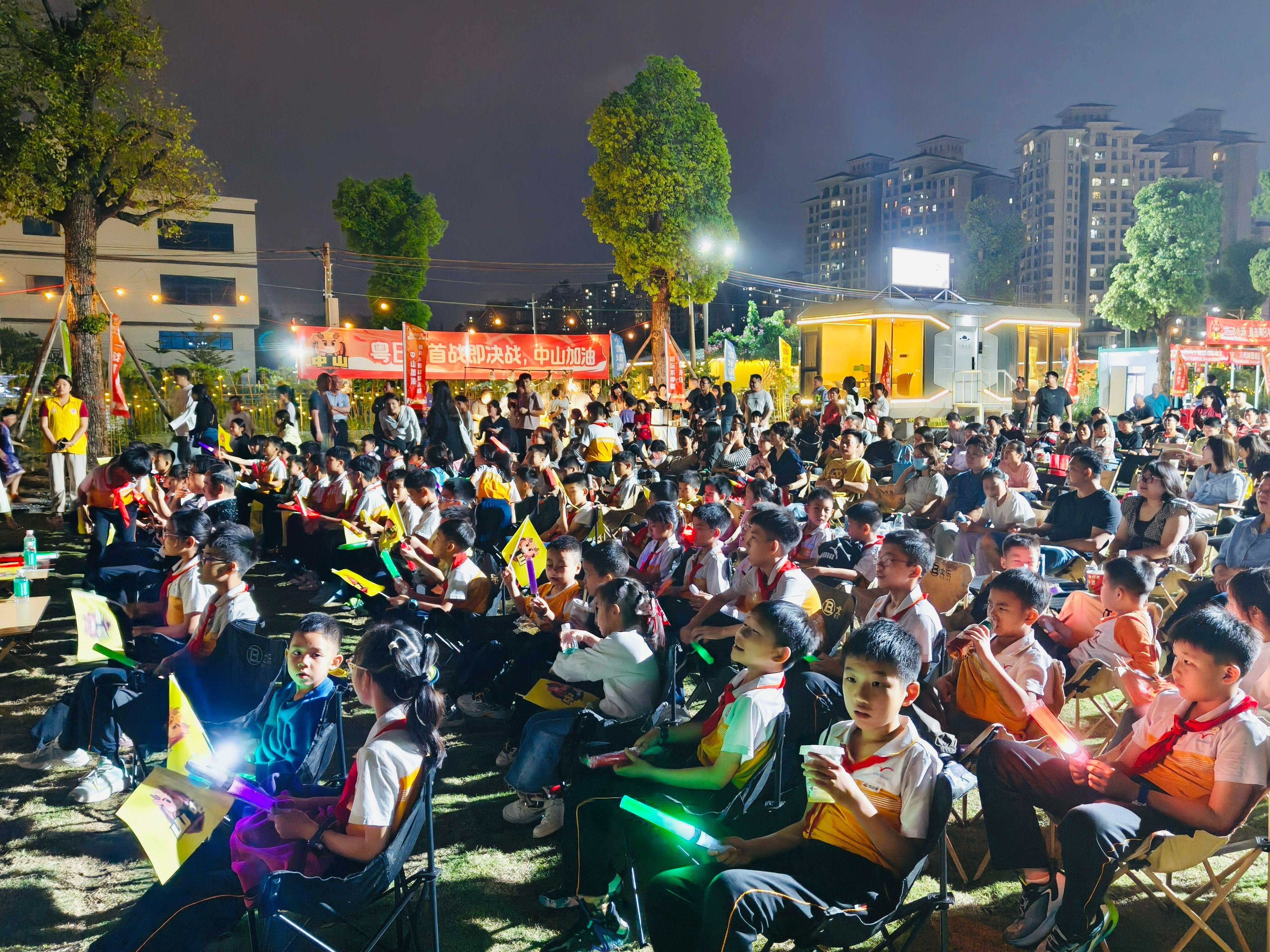 3月28日晚,东凤镇小沥社区在小沥家园举办“东凤湾•U生活,燃动小沥”“粤BA”赛事直播活动,近300名辖区学生、家长及篮球爱好者齐聚参与。现场设户外观赛营地,大屏直播“粤BA”中山队VS茂名队赛事,丫髻山精酿酒业、凡帝城堡酒店倾情提供免费啤酒,小沥家园同步配套特色烧烤,观赛氛围浓厚。