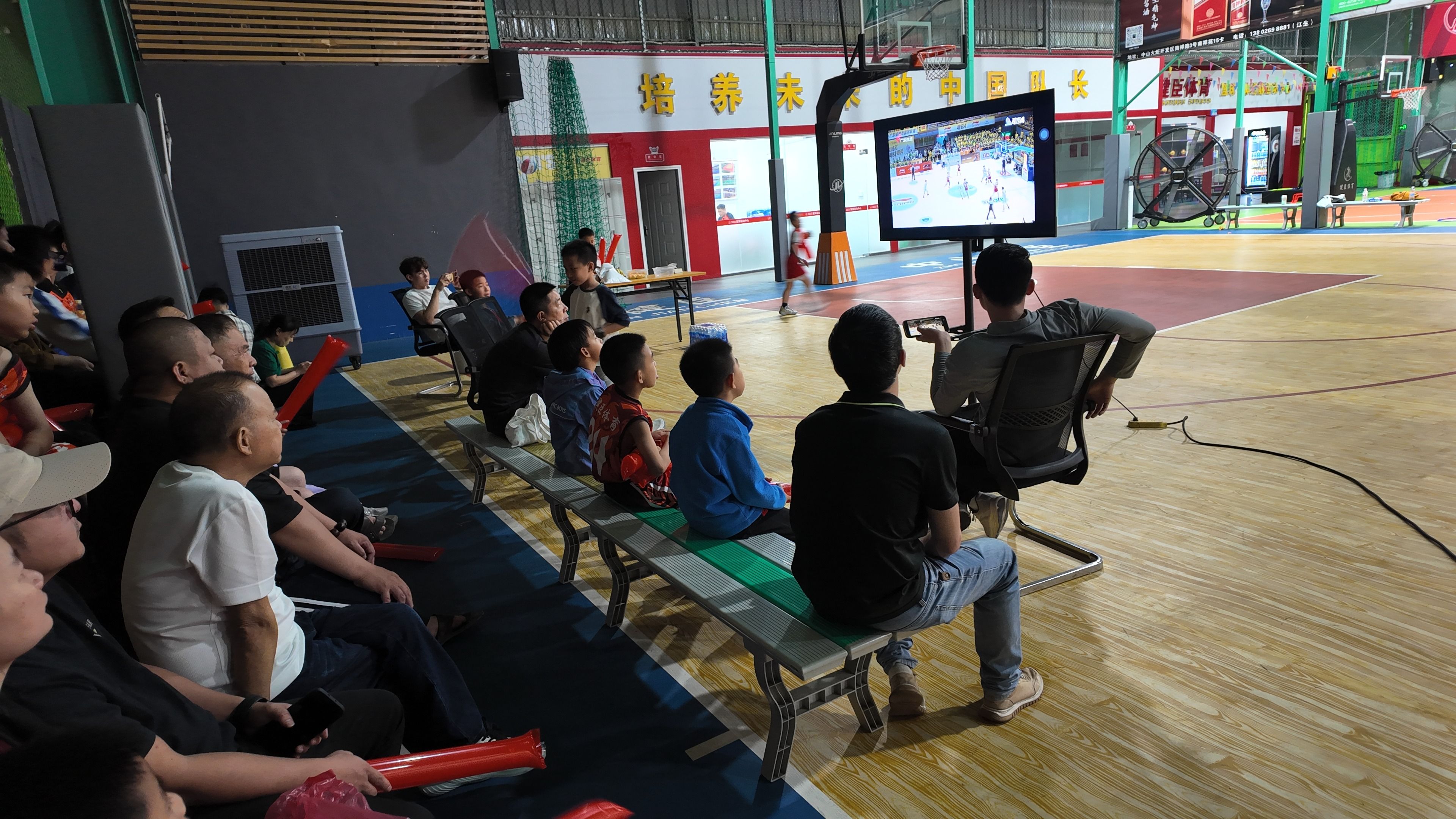 健臣体育篮球体适能运动中心以专业篮球场地为依托,让球迷仿佛置身赛场,每一次进球都引来阵阵欢呼,热血感爆棚;123 工创园宽敞的空间里,大批球迷集结成团,统一为中山队助威,大屏前的加油声整齐划一,声势浩大。