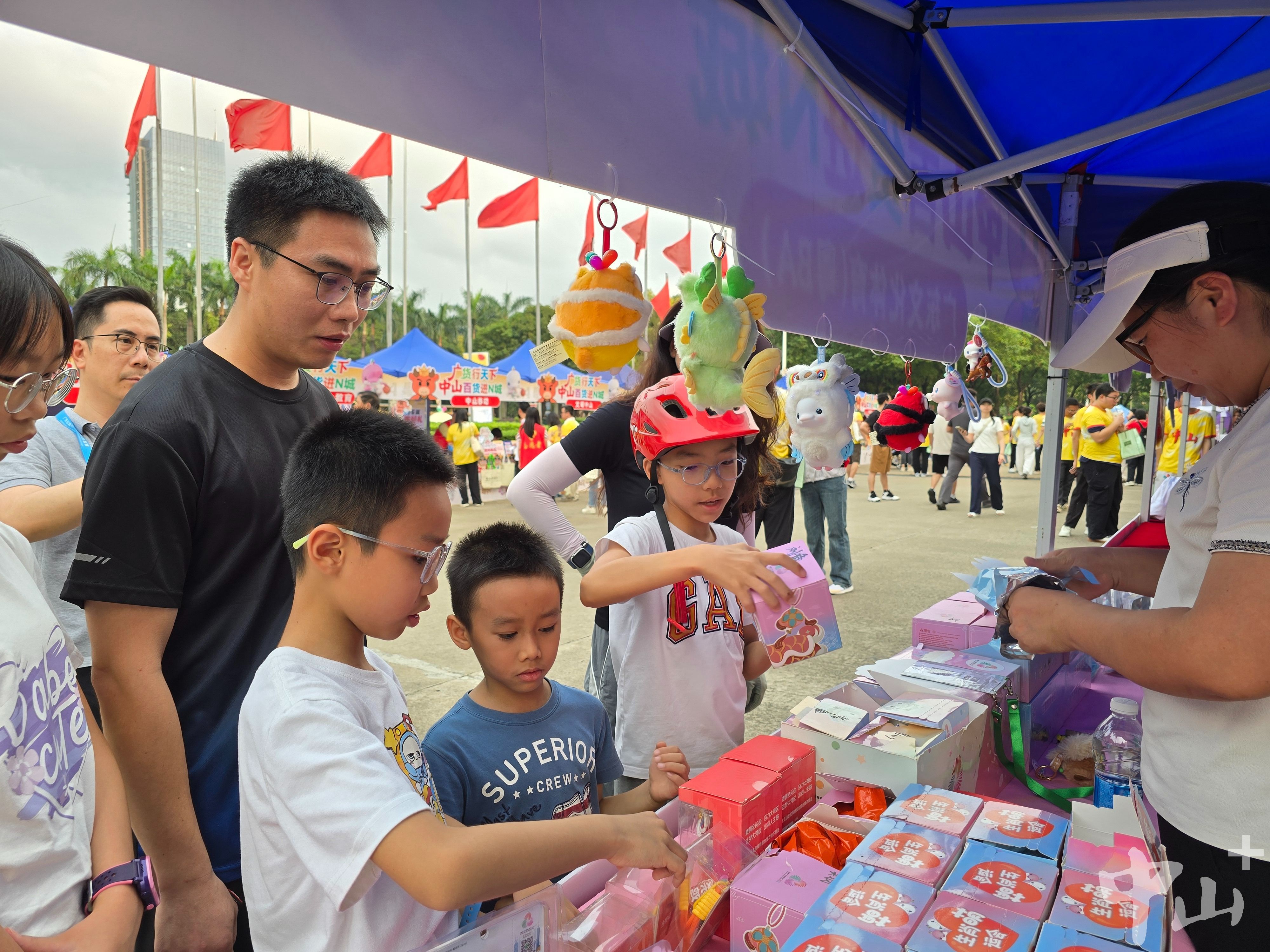 除了美食,非遗手工坊、香山有礼、“粤BA”等手作文创摊位同样人气高涨,纪念T恤、定制徽章、吉祥物玩偶等产品颇受欢迎。
