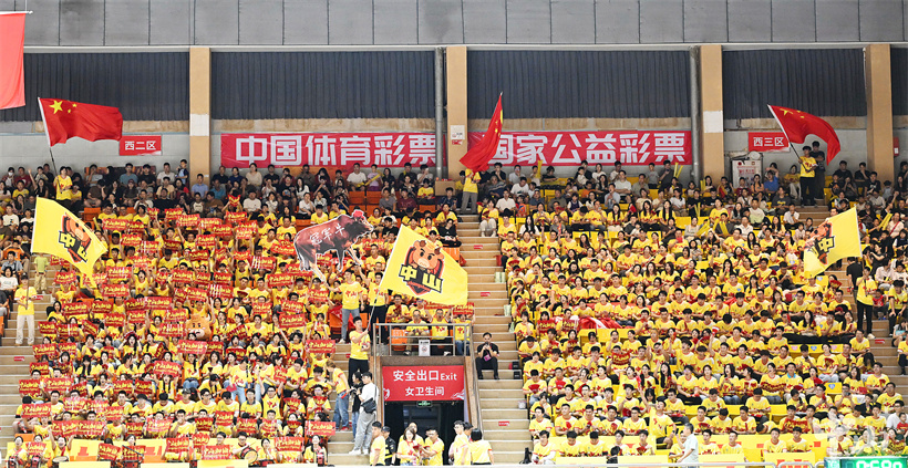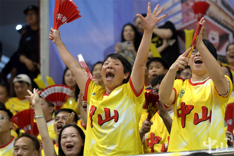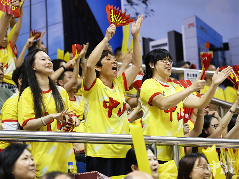 赛事尚未开始,馆内已是一片温暖的“黄色海洋”。由全市各行各业球迷组成的拉拉队,身着统一黄色应援服,手持助威道具、高举“中山未赢够 中山再加油”等横幅,早早就位为球队蓄力,嘹亮的口号响彻场馆,为球员注入满满斗志。
