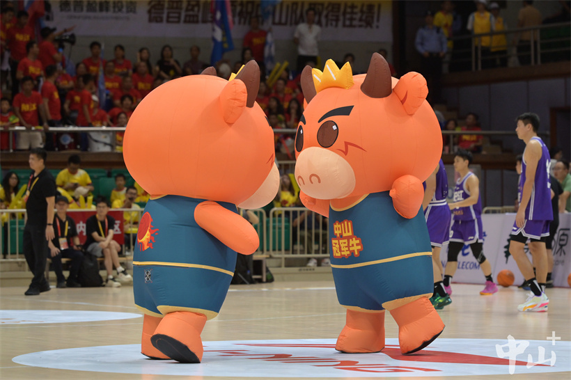 ▲中山队专属吉祥物“中山冠军牛”人偶首次亮相。
