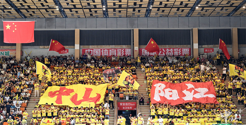 ▲中山球迷组成的拉拉队,让场馆内成为一片“黄色海洋”。