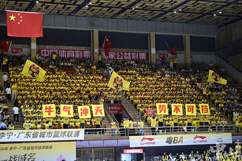 ▲4月11日晚,“粤BA”第三轮中山队主场对阵阳江队,中山体育馆里“热度”爆棚。