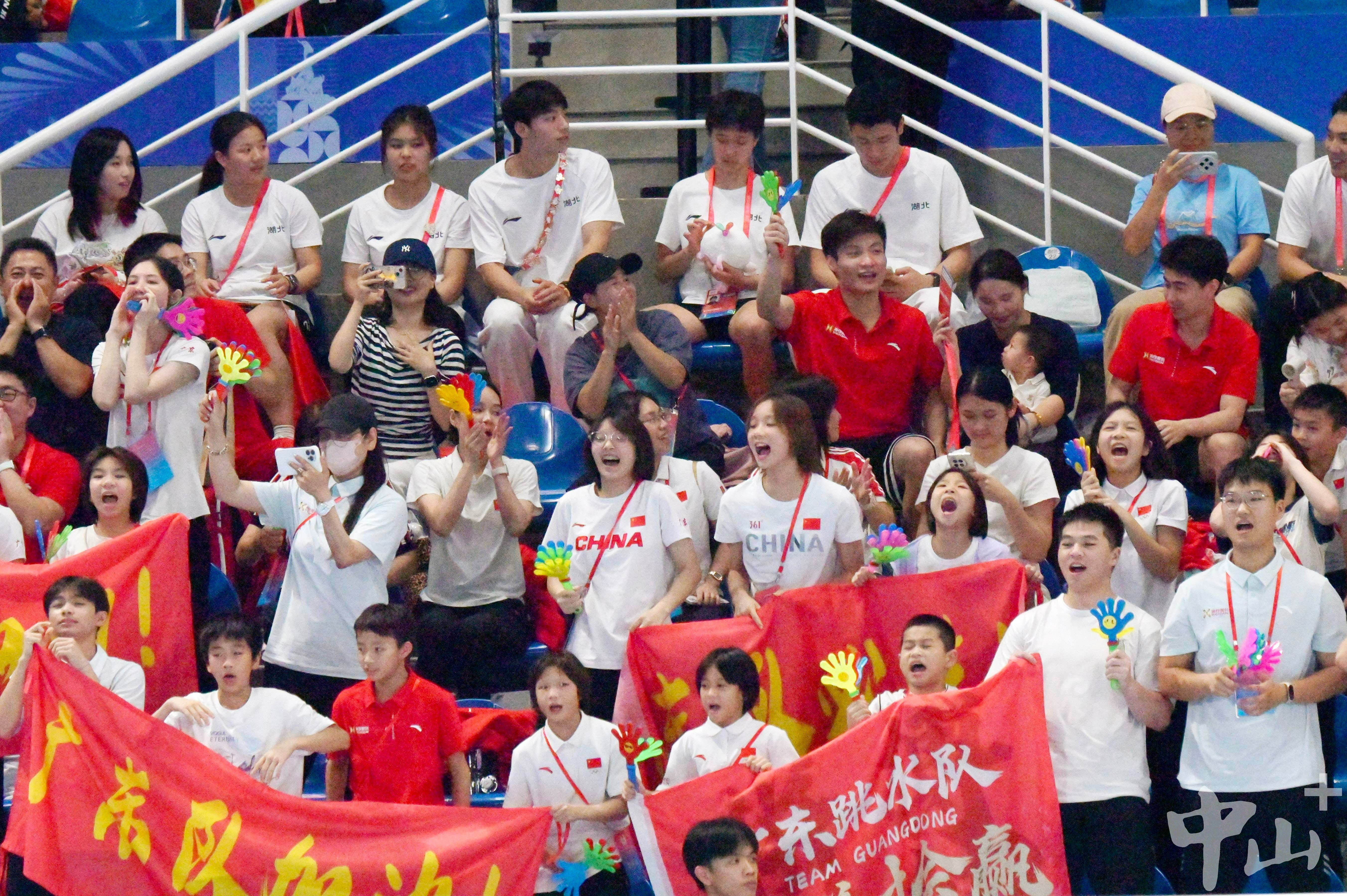 比赛当晚,中山市体育运动学校与中山市教育和体育局组织20余名师生来到现场观赛,陈艺文和林珊的启蒙教练张秀荣也来到现场助威。“她们都是非常聪明的运动员,学动作快,发挥稳。”张秀荣还隔空为爱徒送上鼓励:“你们都是最棒的!夺冠是目标,更是新起点,继续加油!