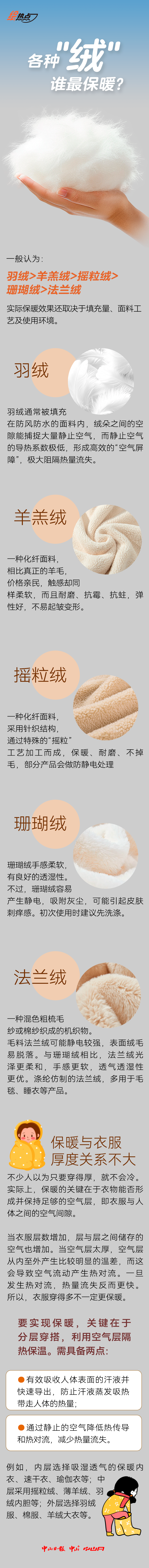天气降温,小伙伴们翻出羽绒、摇粒绒、羊羔绒等各式厚外套,这么多带“绒”的外套,哪种最保暖?一起来了解。