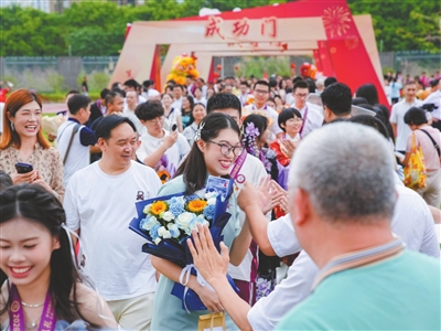 3月28日,中山市烟洲中学举行2026届高三学子成人礼活动。本次成人礼以“承书院雅风明远志 立成人壮志报家国”为主题。学子们在父母的陪伴下,与恩师默契击掌,走过象征成长、担当与奋进的一道道门,以昂扬姿态开启人生新篇章。