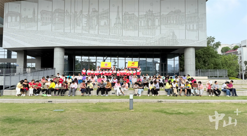 “咔嚓!”活动开始前,人们在中山纪念图书馆前,手捧书香,定格下瞬间的美好。随后,在志愿者的带领下,大家起身跟着律动活动手脚、伸展身体,简单的热身操让氛围迅速升温。