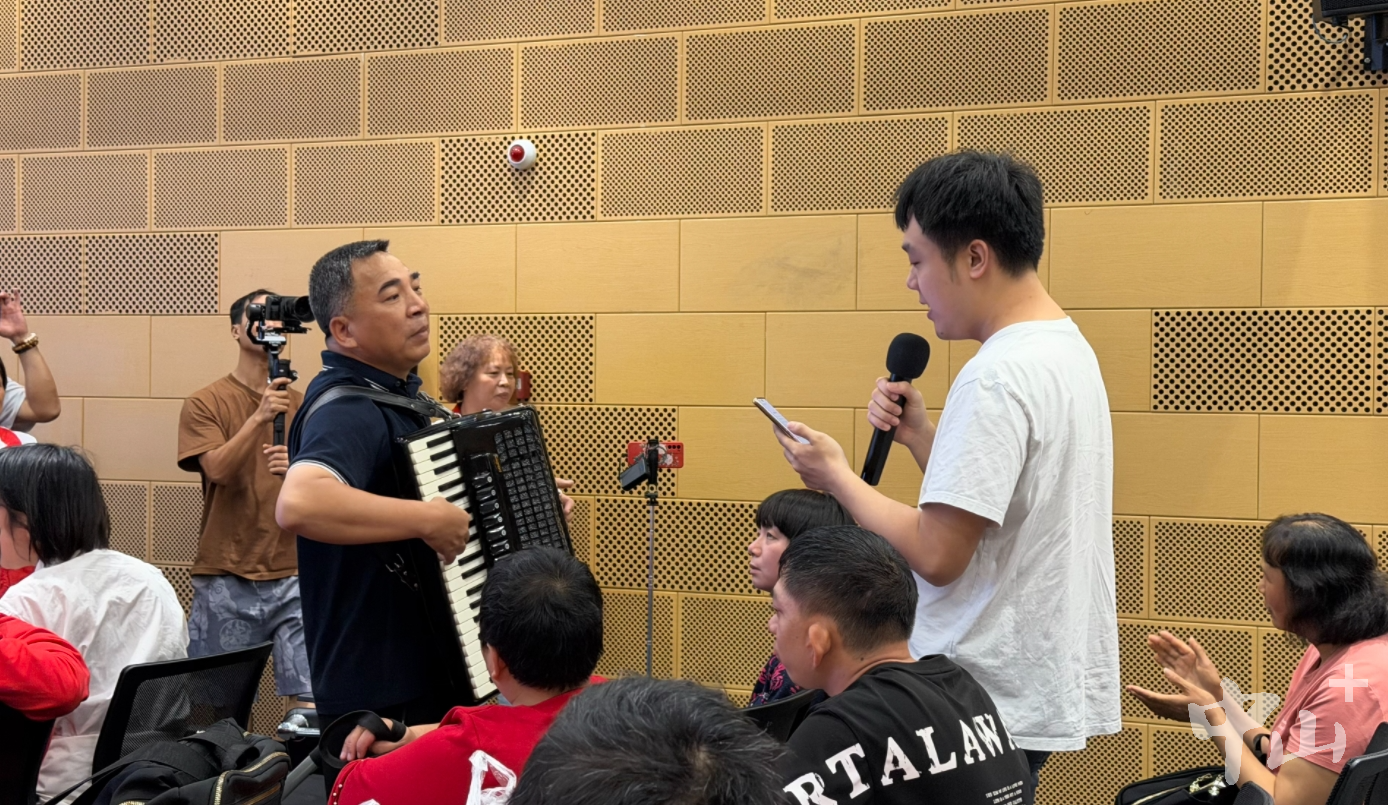 “音乐是无需翻译的语言。”周虎一边拉着手风琴,一边用目光和言语鼓励着每一个人。他坦言,这些孩子中,不少在音乐中的表现不比普通孩子逊色,甚至更专注、更投入。周虎已多次参与此类普特融合活动,“帮助别人,快乐自己。只要他们有需要,我一定到场!”