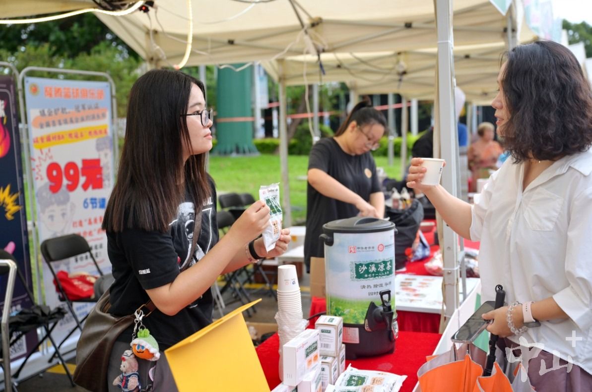 现场,还有30+个摊位涵盖潮流运动、乐队live等。石岐街道也积极参与到“观球+消费”的热潮中,推出为石岐香山古城队写上祝福语免费获得特色饮品的活动。在石岐街道的展位前,不少市民和球迷们拿起笔写下对球队的鼓励,随后开心地领取特色饮品。这一互动活动不仅活跃了现场氛围,也让更多人关注到石岐的特色产品,为中山优品的推广增添了别样活力。随着“中山镇超”赛事的持续推进,也有越来越多的中山本土优品借助这一平台被更多人熟知和喜爱;中山优品也将在赛事经济的助力下,迎来更广阔的发展空间。