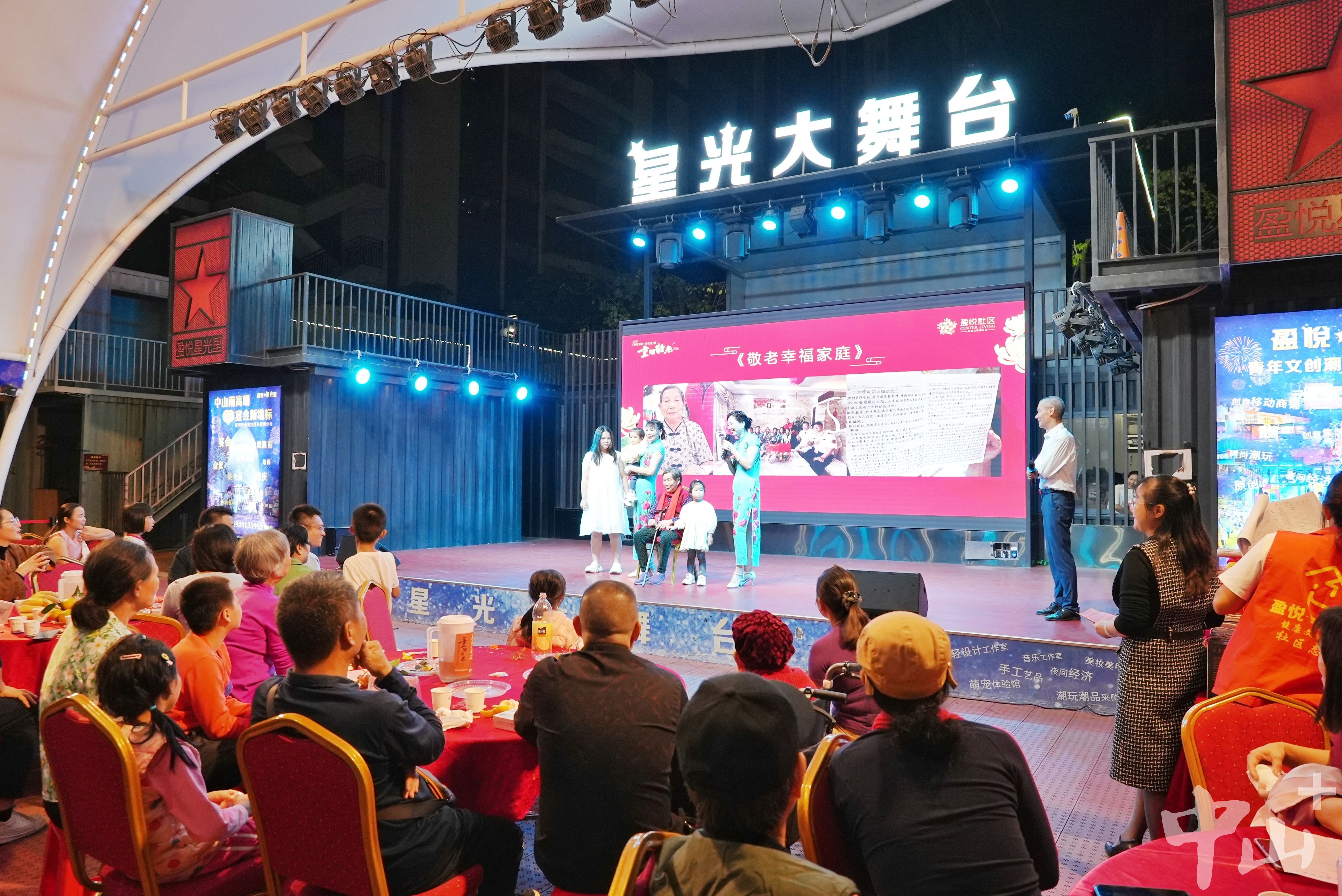 “最右边那位是70多岁的娇姐,旁边是50多岁的贺老师和李老师,他们提前准备了节目。”台上,由小区居民娇姐与姐妹们带来的咸水歌表演《敬老盈悦》热闹上演,坐在舞台边沿的小木凳上的雷钢荣能熟练地报出每一位表演者的名字。在他眼里,这些主动参与的居民,是社区温情的传递者,“大家愿意花时间、花心思筹备节目,不仅让活动更精彩,也让邻里关系越来越近”。