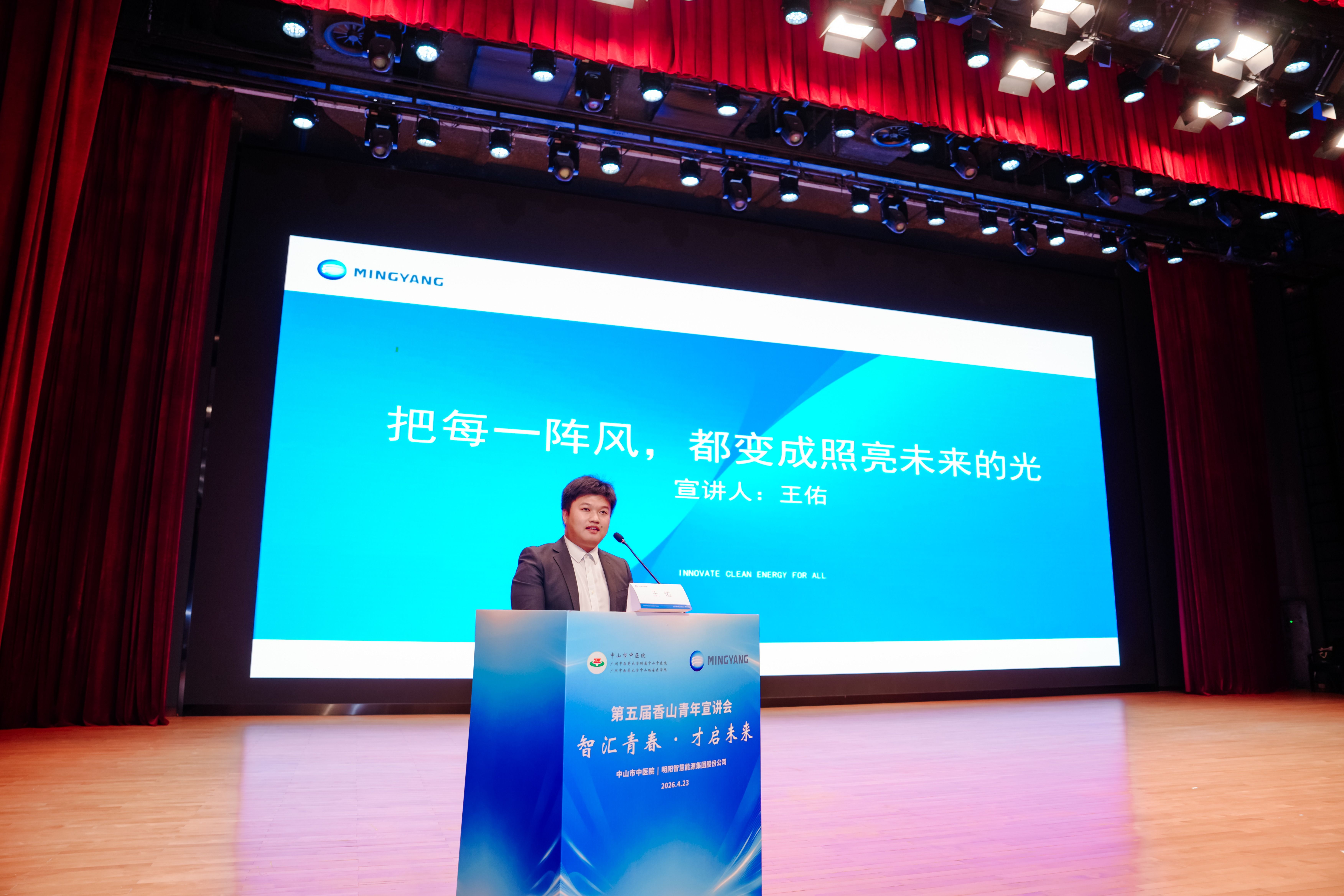 毕业于清华大学能源与动力工程专业的王佑,如今是明阳集团的一名风机控制算法工程师。他从四川岷江边出发,跨越近2000公里来到珠江口,从“吃水的恩惠”走向“追风的脚步”。他用“不服”“扎根”“奔赴”三个关键词,讲述了明阳人从1.5兆瓦起步到全球单机容量最大海上风机下线的奋斗史,以及新一代青年工程师在伶仃洋上书写“大国重器”的青春答卷。“青春就是一场奔赴——奔赴国家最需要的地方,奔赴技术最前沿的阵地。”