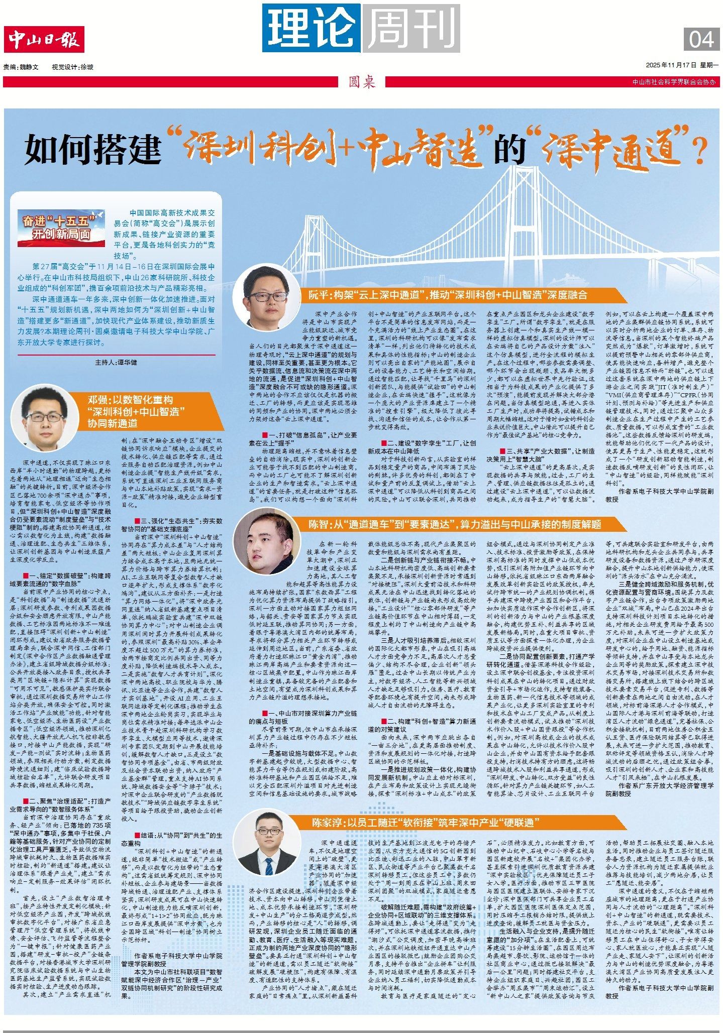 深中通道通车一年多来,深中创新一体化加速推进。面对“十五五”规划新机遇,深中两地如何为“深圳创新+中山智造”搭建更多“新通道”,加快现代产业体系建设,推动新质生力发展?本期理论周刊·圆桌邀请电子科技大学中山学院、广东开放大学专家进行探讨。