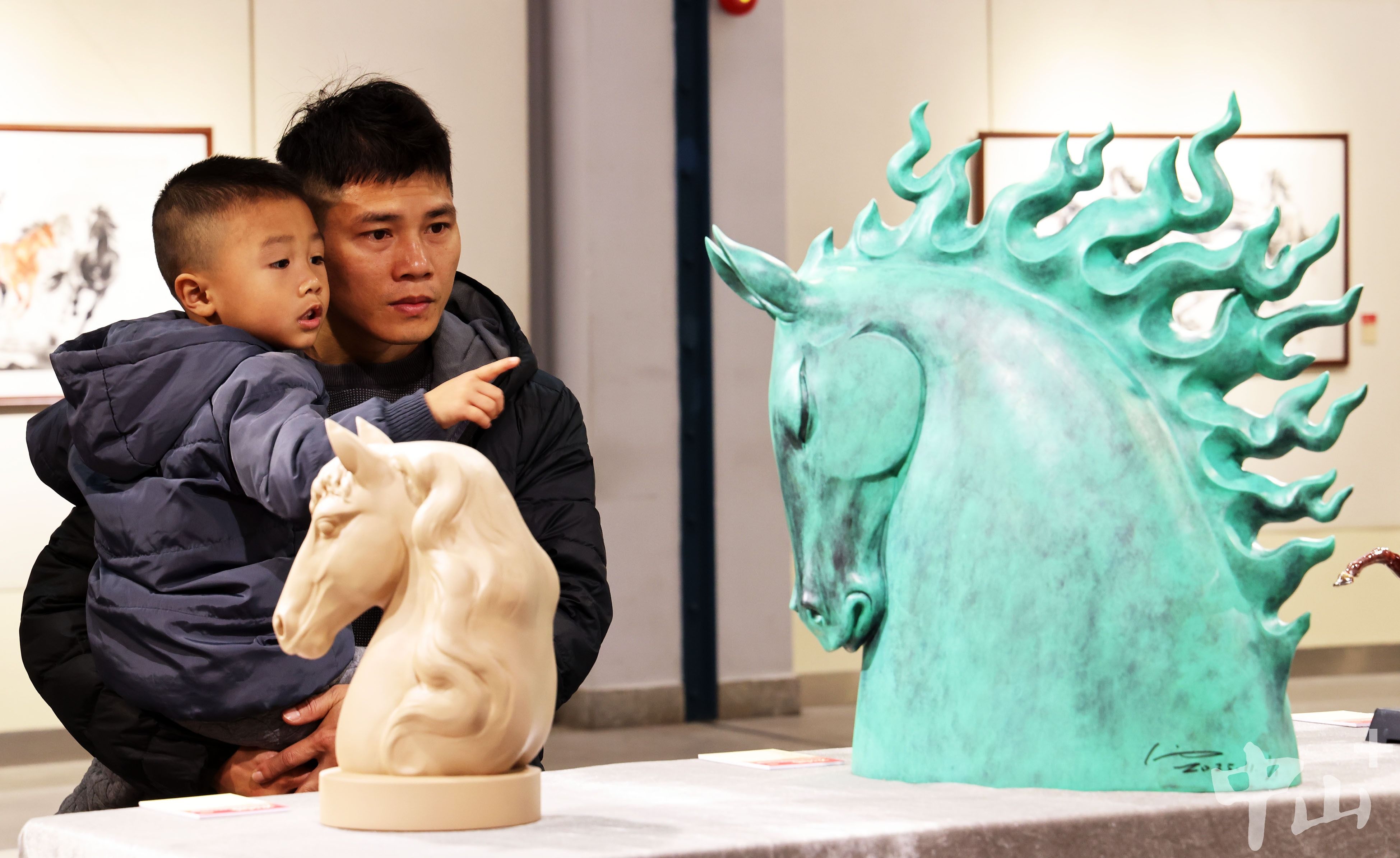 展览现场,前来观展的市民都沉浸在笔墨与色彩的艺术世界中。市民张先生驻足于《八骏呈祥图》前深有感触:“这些作品不仅画得好、写得妙,更透着一股向上的劲儿,马的精气神扑面而来,看完心里特别振奋,满是新春的喜庆感。”就读于本地高校艺术专业的李同学则表示:“李佳雯老师的油画《锋棱》和梁海明的书法作品让我深受启发,既看到了传统艺术的深厚传承,也感受到了创新表达的鲜活活力,让我对美育与创作有了新的思考。”
