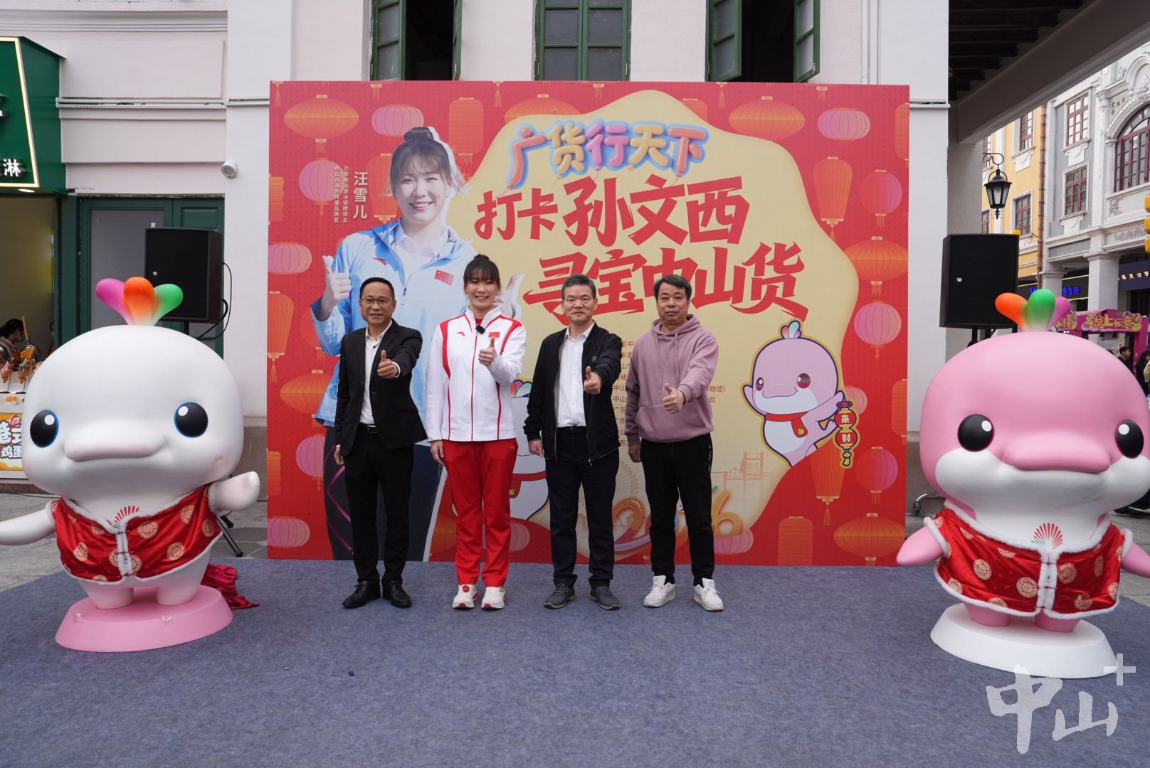 2月8日下午,“广货行天下——打卡孙文西 寻宝中山货”暨大湾鸡中山过大年新春主题活动在孙文西路步行街开幕。活动特别邀请中山市海外传播品牌官、奥运健儿汪雪儿化身“寻宝领队”,与市民游客一同探寻中山好物、感受侨乡年味。