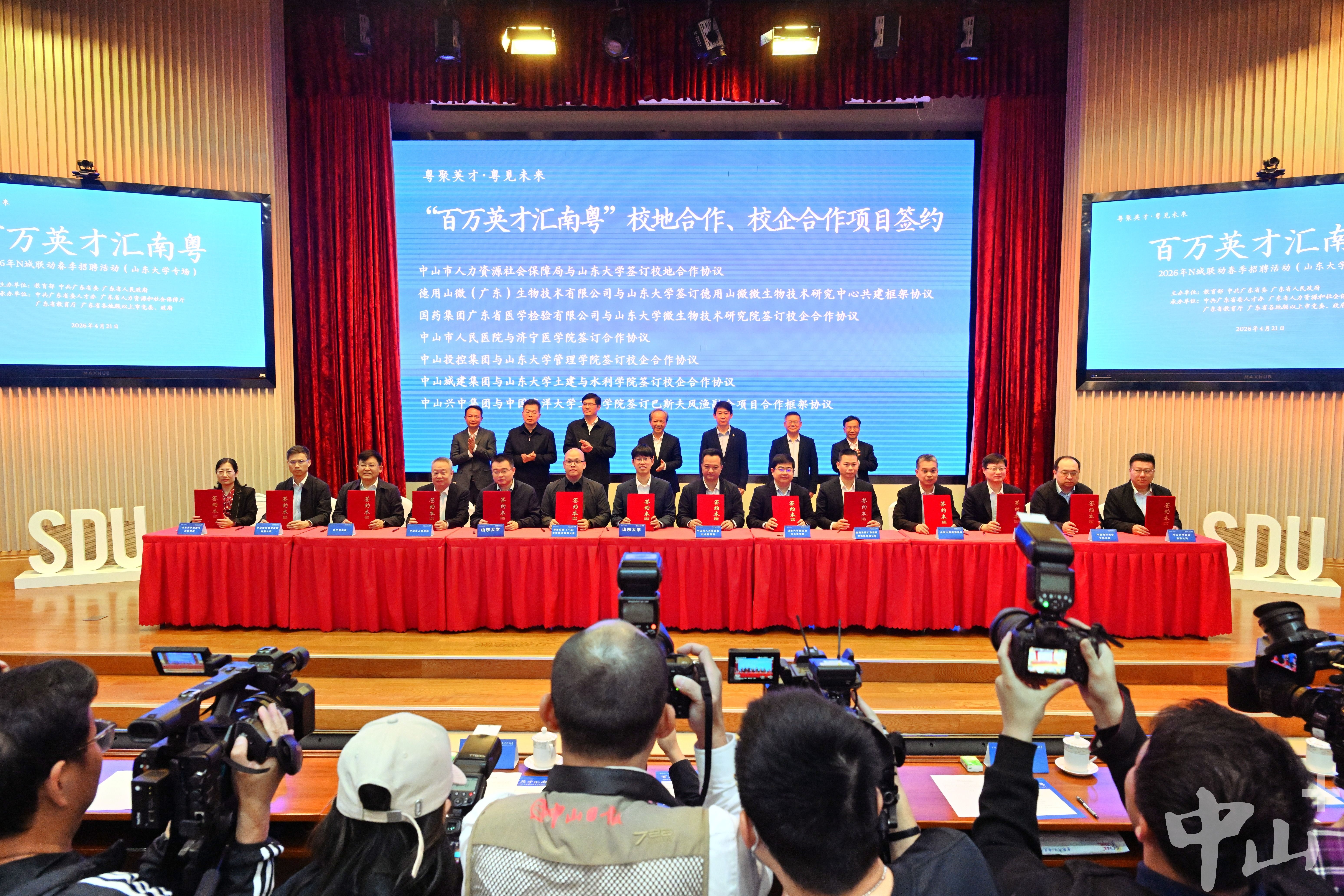 签约仪式上,中山市人力资源和社会保障局与山东大学学生就业创业指导中心签署校地合作协议,双方将建立双向沟通机制,在人才引进、实习实践、博士后平台建设等方面开展长效合作,实现岗位需求与毕业生资源精准对接。