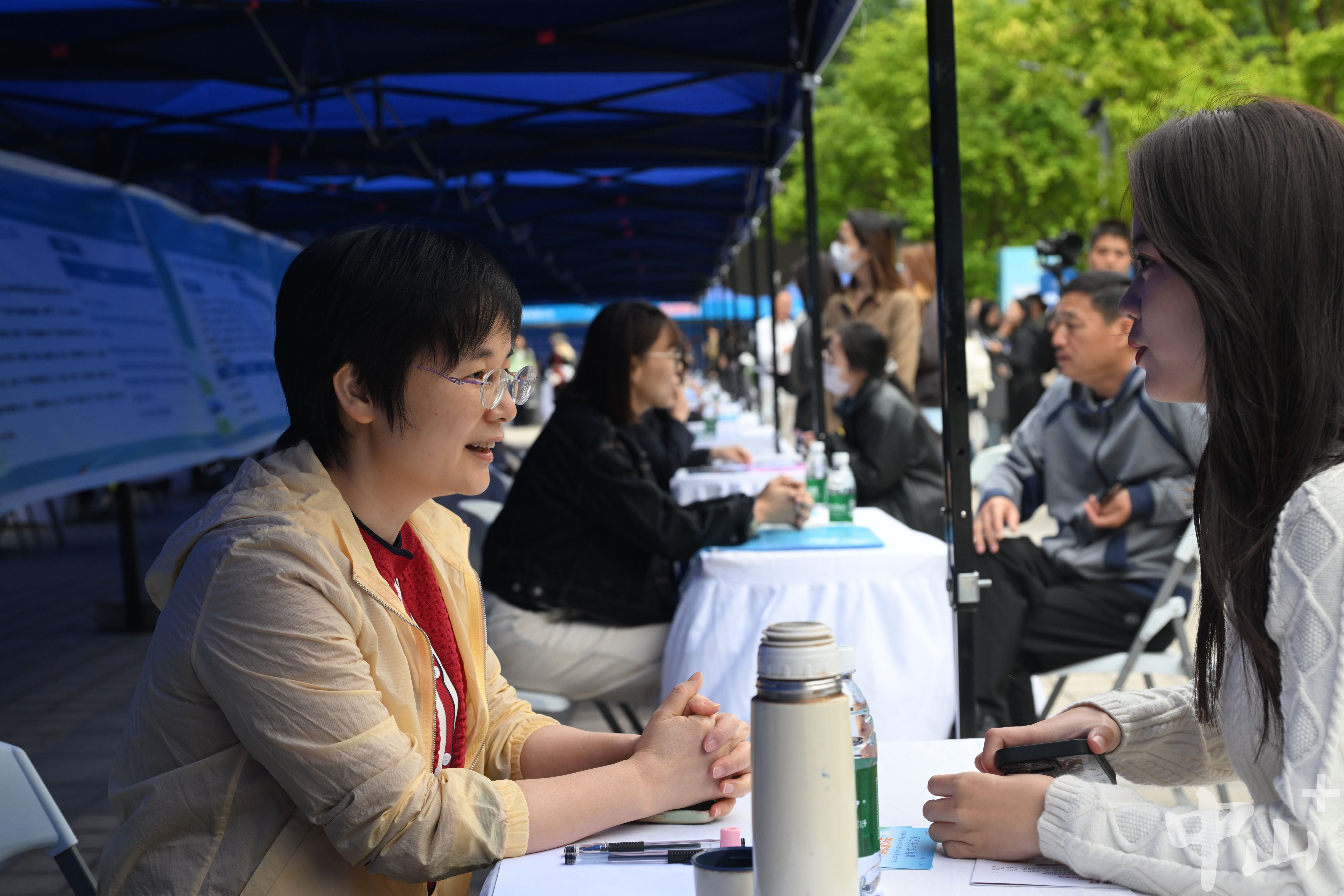 招聘现场人潮涌动,各企业展位前都围满了前来咨询、投递简历的求职者,不少硕士、博士手持简历,与企业招聘负责人深入洽谈,现场供需对接的热情持续升温。