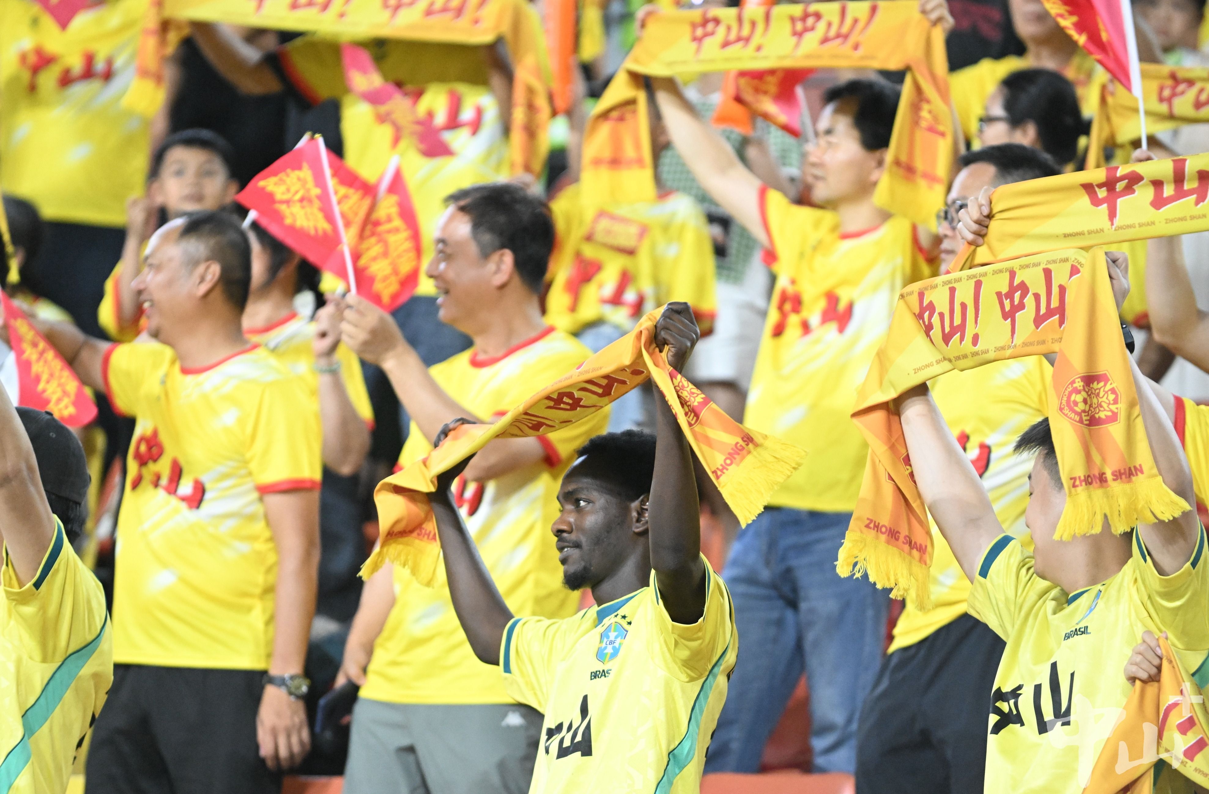 紧攥双手,目不转睛地盯着球场,时而开心鼓掌,时而发出一声轻轻的叹息。4月26日晚,2026粤超“山水德比”现场,一位身着黄色球迷服的中山球迷尤为引人注目。他叫穆萨,来自乍得,如今在中山火炬职业技术学院留学,也在民众一家企业实习,当晚随企业20多位同事一起到场为客场作战的中山队助威。
