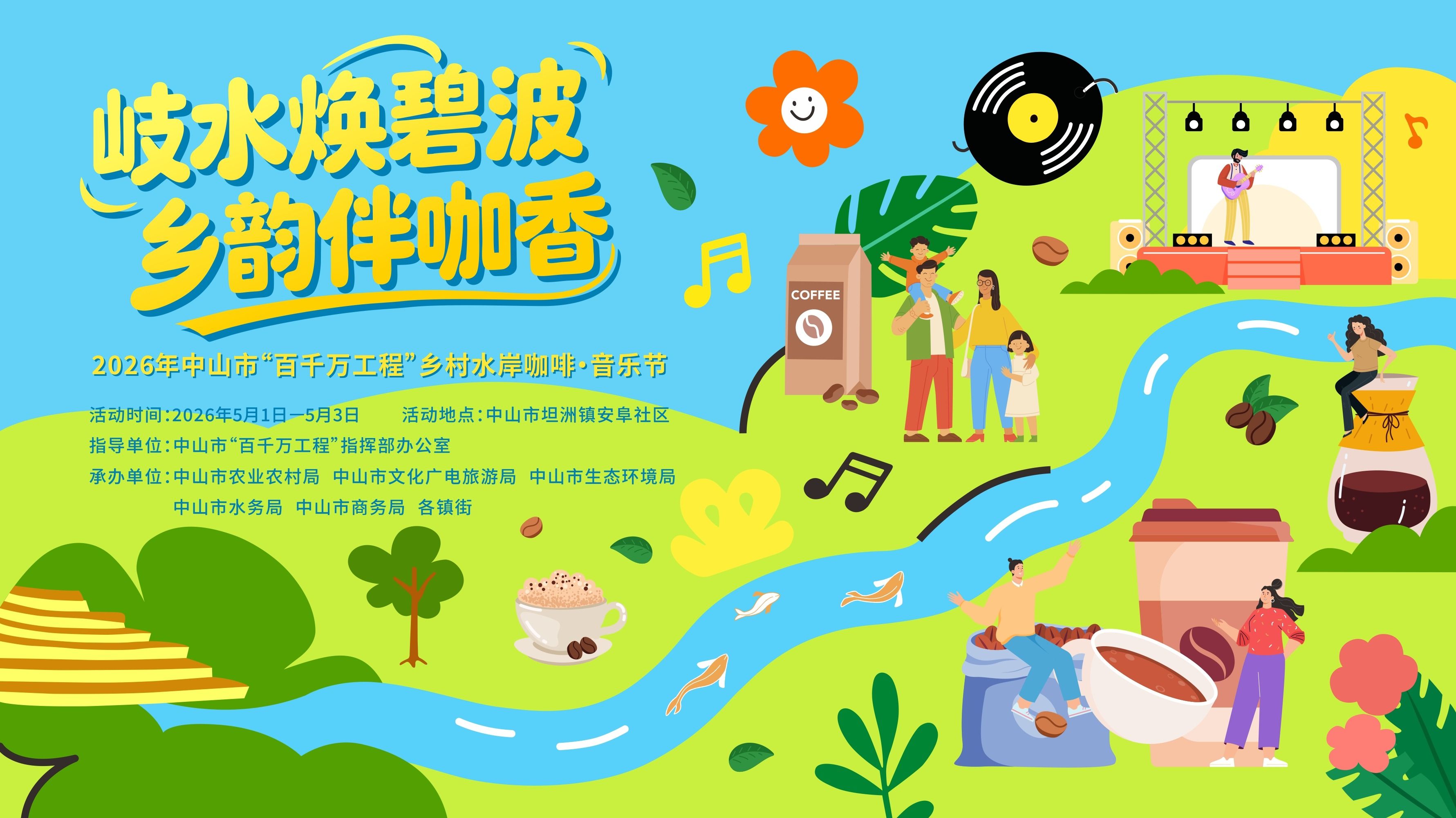 岐水焕碧波,乡韵伴咖香。记者从中山市农业农村局获悉,5月1日-5月3日,2026年中山市“百千万工程”乡村水岸咖啡·音乐节将举办,采取“坦洲镇安阜涌主会场+全市百村联动”模式,将以100场次以上特色活动,全方位展示中山治水成效与“百千万工程”成果。届时将百村联动,以水为媒、以咖为介、以乐会友,精准引流大湾区市民,激活乡村水岸文旅消费市场。