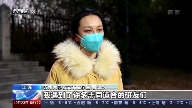苏州大学敬文书院辅导员周彤:我们在跟学生的交流过程中,发现他们很多人反馈,很需要一个集体的复习氛围,在这种情况下我们开辟了线上的云端自习室,创造一个沉浸式的备考氛围,我们也请了各类导师来给同学们做专题的辅导,我们邀请了去年上岸(考上)的学长学姐,来给他们分享上岸的经验。同时我们也非常重视学生的保障服务,整体来说就是从营造考研氛围到细化考研的指导,再到保障备考服务上,我们尽量给学生创设一个好的学习环境和学习氛围。