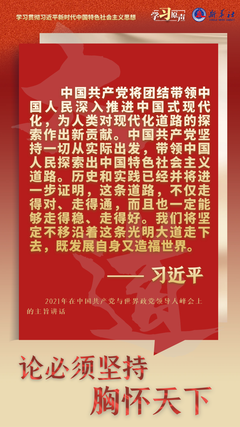 中国共产党是为中国人民谋幸福、为中华民族谋复兴的党,也是为人类谋进步、为世界谋大同的党。我们要拓展世界眼光,深刻洞察人类发展进步潮流,积极回应各国人民普遍关切,为解决人类面临的共同问题作出贡献,以海纳百川的宽阔胸襟借鉴吸收人类一切优秀文明成果,推动建设更加美好的世界。