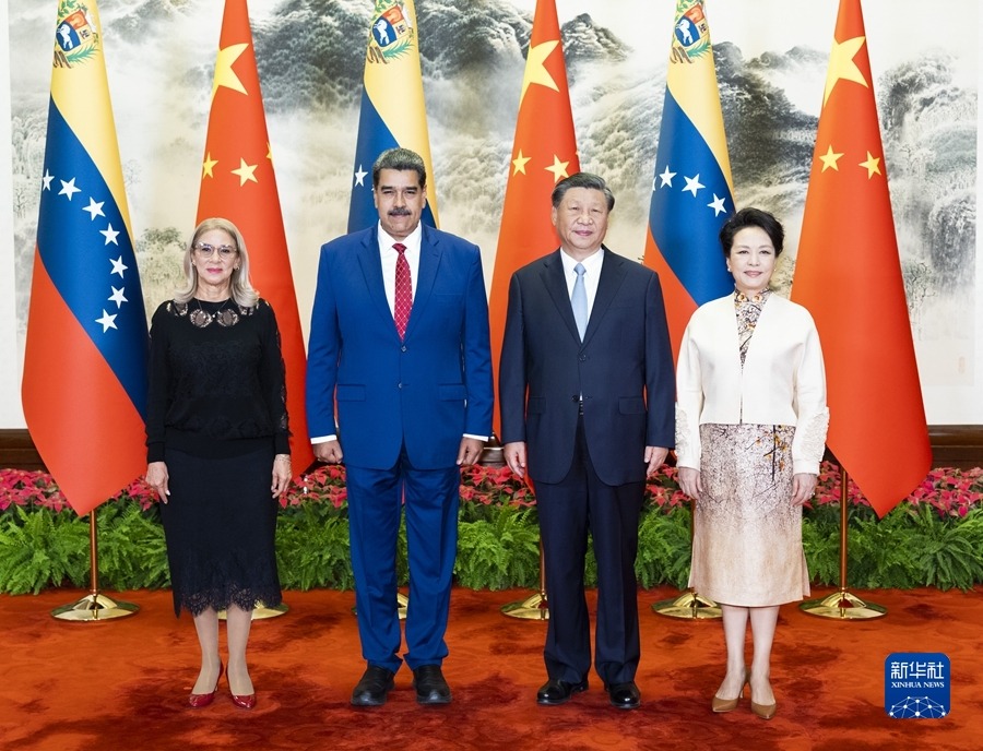 马杜罗表示,在习近平主席领导下,中国已经成为致力于全人类和平、发展与福祉的伟大国家,也是推动多极化新世界的重要引擎。我此次访华期间所见所闻无不充分展现着中国的进步和力量,我要向中国共产党取得的伟大成就表示衷心祝贺。委中两国友谊深厚,合作成果丰硕,两国关系堪称全球南方国家关系的典范。委内瑞拉人民衷心感谢中国政府和人民在委遭受非法单边制裁和新冠疫情多重困难时提供的宝贵支持和帮助。正是得益于中国兄弟的帮助,委内瑞拉人民经受住了考验,在国家经济建设事业中取得了不凡的成就。当前委国家发展和委中关系都处于重要时期,我对中国进行国事访问并同习近平主席一道宣布将委中关系提升为全天候战略伙伴关系具有历史意义,必将开启委中关系新时代。委方愿学习借鉴中方建设经济特区的经验,深化两国农业、投资、教育、旅游等领域务实合作。委方积极支持共建“一带一路”,支持习近平主席提出的全球发展倡议、全球安全倡议、全球文明倡议,愿同中方密切在联合国、金砖机制等多边框架内的沟通协作,维护多边主义和发展中国家正当利益,推动构建人类命运共同体。委方愿为促进拉共体同中国关系进一步发展发挥积极作用。
